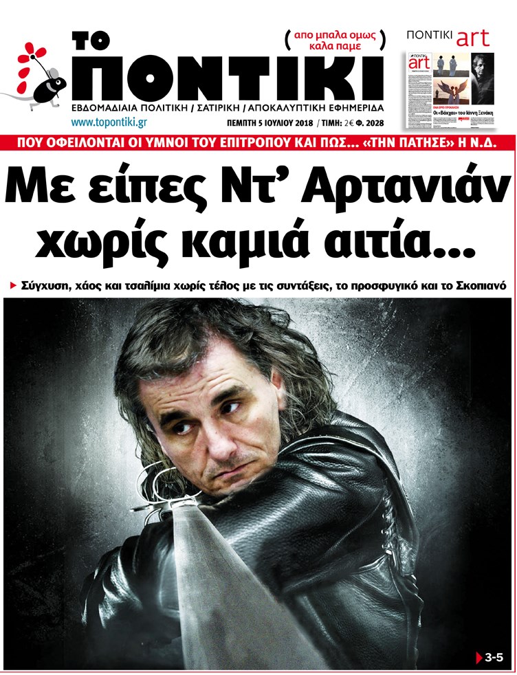 Το Ποντίκι σήμερα 5/7/2018 Enikos Newsroom 06:16, Πέμπτη 05 Ιουλίου 2018 Media Διαβάστε το σημερινό πρωτοσέλιδο της εφημερίδας “Το Ποντίκι”. ΤΟ ΠΟΝΤΙΚΙ Μοιράσου το: σχολίασε κι εσύ (0 σχόλια) Ακολουθήστε το enikos.gr στο Google News και μάθετε πρώτοι όλες τις ειδήσεις Δείτε όλες τις τελευταίες ειδήσεις από την Ελλάδα και τον Κόσμο στο enikos.gr Ειδήσεις Ροή Ειδήσεων 5 ώρες πριν Μητσοτάκης: Αναγκαία η μεταρρύθμιση του πρωτογενούς τομέα – Τα 6 νέα μέτρα για το στεγαστικό και οι αναφορές σε «Ιθάκη» και «πολιτικούς του καναπέ» 4 ώρες πριν Δάνεια σε ελβετικό φράγκο: Τα βασικά σημεία της ρύθμισης – ανάσας για 40.000 δανειολήπτες – Αναλυτικός οδηγός με ερωτήσεις και απαντήσεις 4 ώρες πριν Κυψέλη: Εξιτήριο πήρε η 14χρονη μαθήτρια που μαχαιρώθηκε από την 16χρονη σε σχολείο – «Θέλω να βοηθήσω το παιδί, έχει μπλέξει με κακές παρέες» 4 ώρες πριν Τραμπ: Γιατί κατέθεσε τώρα την αγωγή κατά του BBC – Πώς η κίνησή του εξυπηρετεί το νέο δόγμα του για «αντίσταση» στην Ευρώπη, υπέρ των συντηρητικών 5 ώρες πριν ΟΠΕΚΕΠΕ – Παράνομες επιδοτήσεις: Ελεύθεροι με περιοριστικούς όρους και οι 7 κατηγορούμενοι που απολογήθηκαν σήμερα 4 ώρες πριν Ανακαλύφθηκε βυθισμένη πέτρινη κατασκευή ανοιχτά της Κριμαίας – Αποτελεί μέρος αρχαίας ελληνικής αποικίας 5 ώρες πριν Ύπνος: Αυτό μπορεί να είναι το χειρότερο λάθος για το βιολογικό ρολόι σας, σύμφωνα με ειδικό 6 ώρες πριν Αριθμολογία: Οι άνθρωποι που έχουν γεννηθεί αυτές τις 3 ημερομηνίες, προσελκύουν μεγάλη τύχη πριν από το τέλος του 2025 8 ώρες πριν Οι 7 συμπεριφορές που μαρτυρούν ότι ένας άνδρας επενδύει μακροπρόθεσμα σε μια σχέση 13 λεπτά πριν Ντόναλντ Τραμπ: Κάλυψε απόλυτα την προσωπάρχη του Λευκού Οίκου: «Ναι, έχω προσωπικότητα αλκοολικού» 28 λεπτά πριν ΗΠΑ: Στην αγορά δύο Boeing 747-8 προχωρά η Πολεμική Αεροπορία για την υποστήριξη του προεδρικού στόλου 43 λεπτά πριν Ιταλία: Λεωφορείο έπεσε πάνω σε βιτρίνα καταστήματος στο Τορίνο – Τρεις τραυματίες 58 λεπτά πριν Χαλάνδρι: Καθηγητής έπιασε με κόφτη τα δάχτυλα μαθητή σε κατάληψη – «Μου έχεις πιάσει το χέρι» 1 ώρα πριν Ουκρανία: Εκρήξεις στο Κίεβο ύστερα από προειδοποίηση για επιδρομή drones ENIKOS NETWORK Αίτημα ΙΣΑ για την εξαίρεση των προσωπικών γιατρών από τις κατ’ οίκον επισκέψεις Η σκανδιναβική μέθοδος στον ύπνο που μπορεί να σώσει έναν γάμο Πιερρακάκης: Ο προϋπολογισμός συμβάλλει ουσιαστικά στην ενίσχυση της αγοραστικής δύναμης της πλειονότητας των εργαζομένων e-ΕΦΚΑ: Παρατείνεται η προθεσμία για την υποβολή ΑΠΔ – Ποιους αφορά Σύγχρονος Νοστράδαμος: Προειδοποιεί για «μεγάλο γεγονός» τους επόμενους μήνες που θα συγκλονίσει τη Βρετανία και τον κόσμο Τεστ παρατηρητικότητας: Μπορείτε να βρείτε τις 3 διαφορές στις εικόνες με έναν πιγκουίνο σε 14 δευτερόλεπτα περισσότερα 20:06 , Τρίτη 16 Δεκεμβρίου 2025 Ο ΣΚΑΙ καταγγέλλει τον ΕΚΚΟΜΕΔ Επιστολή με την οποία καταγράφει την έντονη διαμαρτυρία του προς τον διευθύνοντα σύμβουλο του... 17:40 , Τρίτη 16 Δεκεμβρίου 2025 Eurovision: Στις 4 Ιανουαρίου αποκαλύπτονται τα 28 τραγούδια του ελληνικού τελικού Η αγωνία τελειώνει, η γιορτή της Eurovision αρχίζει στην ΕΡΤ από τις πρώτες ημέρες της νέας χρ... 17:09 , Τρίτη 16 Δεκεμβρίου 2025 Alter Ego Media: Βαθύτατη θλίψη και ειλικρινή συλλυπητήρια για την απώλεια της Ειρήνης Μαρινάκη Τη βαθύτατη θλίψη και τα ειλικρινή συλλυπητήριά της εκφράζει η Alter Ego Media για τον θάνατο ... 13:00 , Τρίτη 16 Δεκεμβρίου 2025 «Στο Παρά Πέντε – 20 Χρόνια Μετά»: Κυκλοφόρησε το τρέιλερ του επετειακού επεισοδ