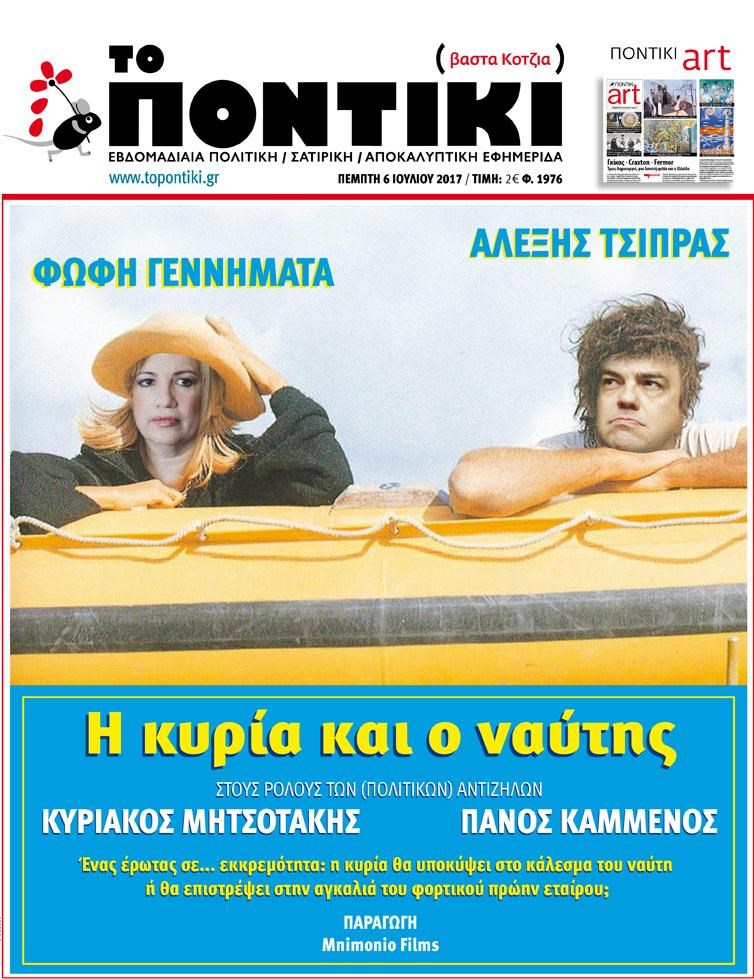 Με πρωτοσέλιδο τίτλο «Η κυρία και ο ναύτης» και ρεπορτάζ για τo πολιτικό φλερτ, τις επόμενες κινήσεις του ΣΥΡΙΖΑ και της Δημοκρατικής Συμπαράταξης, αλλά και για την στάση του Κυριάκου Μητσοτάκη και του Πάνου Καμμένου.