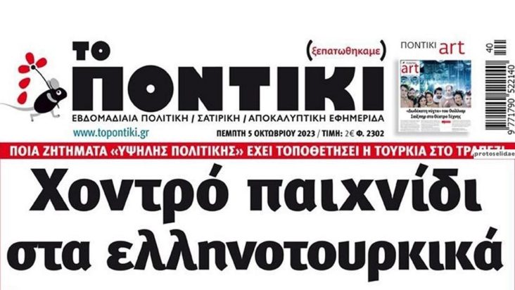 Το Ποντίκι σήμερα Πέμπτη 05/10/2023 2 έτη ago Media ΕΦΗΜΕΡΙΔΕΣ ΠΡΩΤΟΣΕΛΙΔΑ ΤΟ ΠΟΝΤΙΚΙ Διαβάστε το πρωτοσέλιδο της εφημερίδας «Το Ποντίκι» σήμερα 05/10/2023.