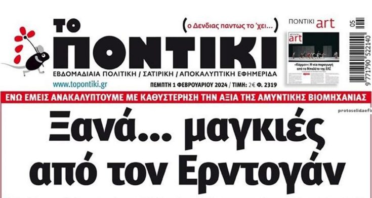 Το Ποντίκι σήμερα Πέμπτη 1/2/2024 2 έτη ago Media ΕΦΗΜΕΡΙΔΕΣ ΠΡΩΤΟΣΕΛΙΔΑ ΤΟ ΠΟΝΤΙΚΙ Διαβάστε το πρωτοσέλιδο της εφημερίδας «Το Ποντίκι» σήμερα 1/2/2024.