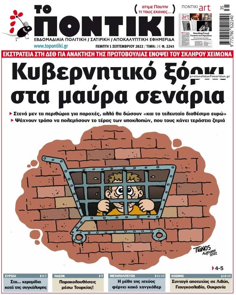 Διαβάστε το πρωτοσέλιδο της εφημερίδας «Το Ποντίκι» σήμερα 01/09/2022.