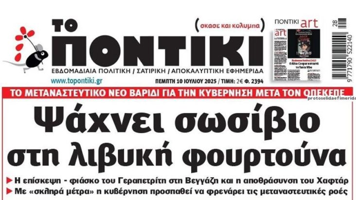 Το Ποντίκι σήμερα Πέμπτη 10/7/2025 5 μήνες ago Media ΕΦΗΜΕΡΙΔΕΣ ΠΡΩΤΟΣΕΛΙΔΑ ΤΟ ΠΟΝΤΙΚΙ Διαβάστε το πρωτοσέλιδο της εφημερίδας «Το Ποντίκι» σήμερα 10/7/2025.