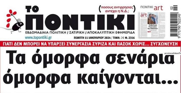 Το Ποντίκι σήμερα Πέμπτη 11/1/2024 2 έτη ago Media ΕΦΗΜΕΡΙΔΕΣ ΠΡΩΤΟΣΕΛΙΔΑ ΤΟ ΠΟΝΤΙΚΙ Διαβάστε το πρωτοσέλιδο της εφημερίδας «Το Ποντίκι» σήμερα 11/1/2024.