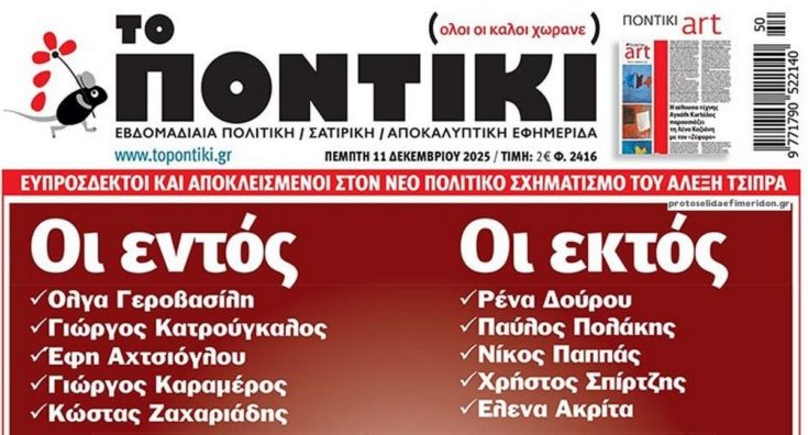 Το Ποντίκι σήμερα Πέμπτη 11/12/2025 2 μήνες ago Media ΕΦΗΜΕΡΙΔΕΣ ΠΡΩΤΟΣΕΛΙΔΑ ΤΟ ΠΟΝΤΙΚΙ Διαβάστε το πρωτοσέλιδο της εφημερίδας «Το Ποντίκι» σήμερα 11/12/2025.