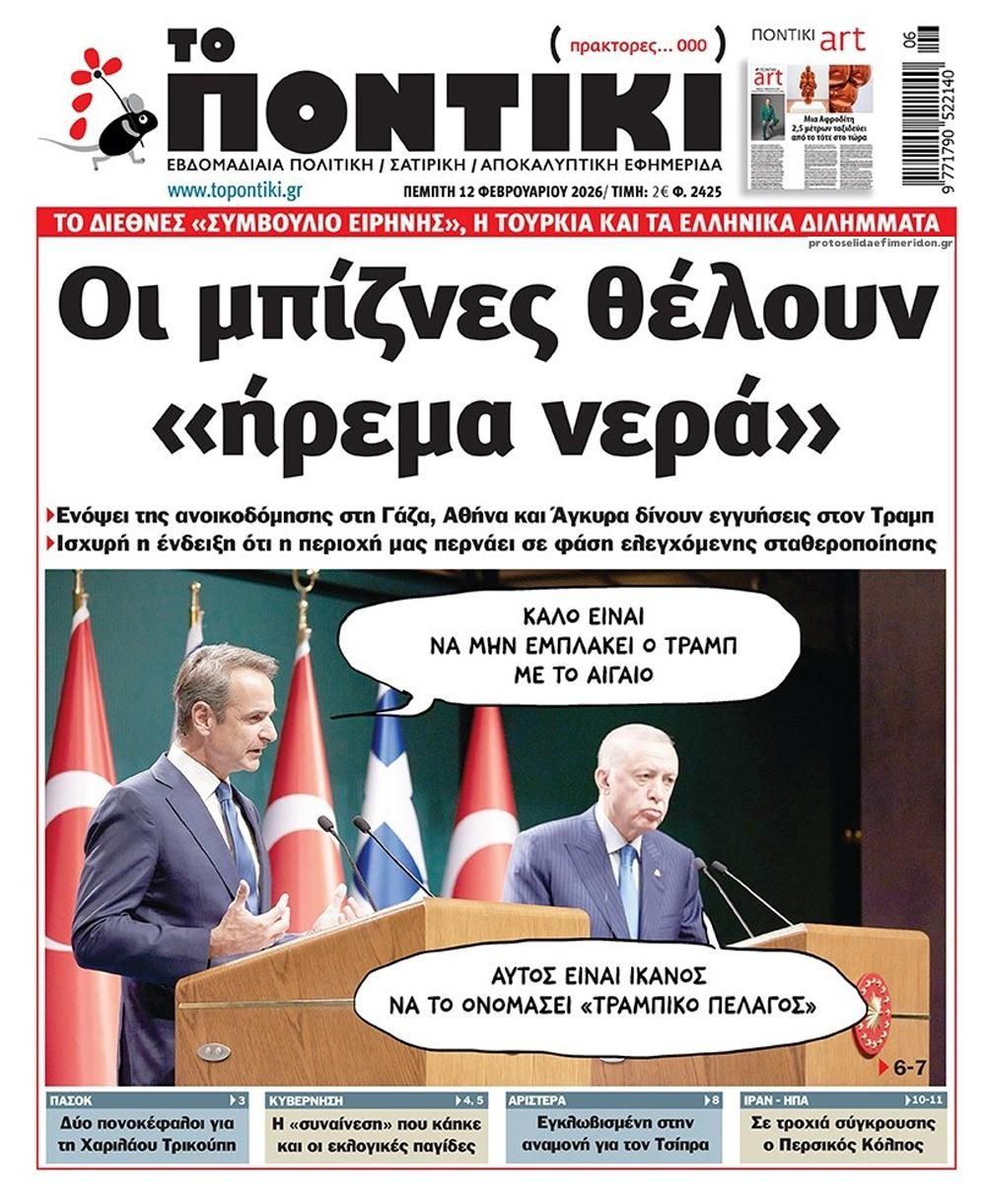Το Ποντίκι σήμερα Πέμπτη 12/2/2026 Enikos Newsroom 05:22, Πέμπτη 12 Φεβρουαρίου 2026 Media Διαβάστε το πρωτοσέλιδο της εφημερίδας «Το Ποντίκι» σήμερα 12/2/2026. ΕΦΗΜΕΡΙΔΕΣ ΠΡΩΤΟΣΕΛΙΔA ΤΟ ΠΟΝΤΙΚΙ Μοιράσου το: Μεταγραφική «βόμβα» στον Παναθηναϊκό: Υπέγραψε για 2,5 χρόνια με τον Αμερικάνο σταρ Χέιζ-Ντέιβις – Δείτε την ανακοίνωση του Δημήτρη Γιαννακόπουλου Σουρεαλιστικός Γρηγόρης Αρναούτογλου πήγε ντυμένος Πυθία στο Αλ Τσαντίρι – Δείτε βίντεο Σωκράτης Φάμελλος: «Καλή Τσικνοπέμπτη με τις τιμές να έχουν φτάσει στα ύψη» σχολίασε κι εσύ (0 σχόλια) Ακολουθήστε το enikos.gr στο Google News και μάθετε πρώτοι όλες τις ειδήσεις Δείτε όλες τις τελευταίες ειδήσεις από την Ελλάδα και τον Κόσμο στο enikos.gr Ειδήσεις Ροή Ειδήσεων 7 ώρες πριν Η αποτίμηση της συνάντησης Μητσοτάκη-Ερντογάν: Το casus belli, τα μηνύματα φιλίας και οι συμφωνίες Ελλάδας-Τουρκίας 8 ώρες πριν Υπόθεση Επστάιν: Οι αποκαλύψεις προκαλούν χάος από τη Σκανδιναβία έως τη Νότια Ασία – Το τίμημα του πάθους για γυναίκες, σεξ και χρήμα 7 ώρες πριν Σμήναρχος: Πού επικεντρώνονται οι έρευνες μετά την προφυλάκιση του – Ο φάκελος του αεροδικείου και τα κενά στην απολογία του 9 ώρες πριν Ηράκλειο: Ερωτική αντιζηλία πίσω από την δολοφονία του 40χρονου που εντοπίστηκε νεκρός – Τον εγκατέλειψαν αιμόφυρτο να ψυχορραγεί 3 ώρες πριν Μεταγραφική «βόμβα» στον Παναθηναϊκό: Υπέγραψε για 2,5 χρόνια με τον Αμερικάνο σταρ Χέιζ-Ντέιβις – Δείτε την ανακοίνωση του Δημήτρη Γιαννακόπουλου 15 ώρες πριν ΕΛΤΑ: Το «φρακαρισμένο» παλιό κέντρο διαλογής στην Αττική και οι καθυστερήσεις στις παραδόσεις που αγγίζουν τους 2 μήνες – «Είμαστε επιφυλακτικοί ως προς τον σχεδιασμό» 14 ώρες πριν Τουρκία: Σε ρινγκ μετατράπηκε πάλι η Βουλή – Έπεσαν γροθιές για την ορκωμοσία του νέου υπουργού Δικαιοσύνης 9 ώρες πριν Καλλιθέα: Συγκλονίζει ο πατέρας του κοριτσιού που έπεσε στο συντριβάνι – «Ο Θεός να βάλει το χέρι του» 11 ώρες πριν Μια απλή χημική μετατροπή ξεκλειδώνει ένα από τα «Άγια Δισκοπότηρα» της κβαντικής υπολογιστικής 9 λεπτά πριν ΔΕΔΔΗΕ: Διακοπές ρεύματος σήμερα (12/2) στην Αθήνα και σε άλλες 13 περιοχές της Αττικής 24 λεπτά πριν Οπτική ψευδαίσθηση: Μόνο όσοι έχουν τέλεια όραση μπορούν να εντοπίσουν την καρδιά μέσα σε 11 δευτερόλεπτα 40 λεπτά πριν Ψυχική υγεία: Η τροφή που πρέπει να αποφεύγετε το πρωί, σύμφωνα με ειδικό 47 λεπτά πριν Σαν σήμερα 12 Φεβρουαρίου: Τα σημαντικότερα γεγονότα της ημέρας 52 λεπτά πριν Οι οικονομικές εφημερίδες 12/2/2026 ENIKOS NETWORK Τι αποκαλύπτουν τα χρώματα στο σπίτι για την προσωπικότητα σας – Τα κακά νέα για όσους επιλέγουν το κόκκινο Θετική εξέλιξη για τα παιδιά με γρίπη και RSV στις ΜΕΘ – Αγωνία για το κοριτσάκι από το συντριβάνι Νίκος Παπαθανάσης: Δεν υπάρχει περίπτωση να δοθεί ούτε ένα ευρώ χωρίς να είναι σύννομο ΕΕΑ: Ετοιμάζει στατιστική έρευνα για την απορρόφηση επιδοτήσεων σε μικρομεσαίες επιχειρήσεις Ευπάθεια στο moltbook ai αποκαλύπτει email, tokens σύνδεσης και api keys Αυτός είναι ο ρόλος της μικρής τρύπας στους νυχοκόπτες – «Είμαι ο μόνος που δεν το ήξερε;»» περισσότερα 05:38 , Πέμπτη 12 Φεβρουαρίου 2026 Οι πολιτικές εφημερίδες 12/2/2026 Διαβάστε τα πρωτοσέλιδα από τις πολιτικές εφημερίδες, σήμερα 12/2/2026. 23:35 , Τετάρτη 11 Φεβρουαρίου 2026 Eurovision – Sing for Greece 2026: Αυτοί είναι οι 7 φιναλίστ που προκρίθηκαν στον Εθνικό τελικό Με εντυπωσιακές εμφανίσεις και έντονη συμμετοχή του κοινού, ολοκληρώθηκε ο Α’ Ημιτελικός του S... 23:27 , Τετάρτη 11 Φεβρουαρίου 2026 Eurovision – Sing for Greece 2026: Το «