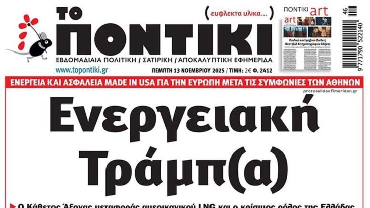 Το Ποντίκι σήμερα Πέμπτη 13/11/2025 2 μήνες ago Media ΕΦΗΜΕΡΙΔΕΣ ΠΡΩΤΟΣΕΛΙΔΑ ΤΟ ΠΟΝΤΙΚΙ Διαβάστε το πρωτοσέλιδο της εφημερίδας «Το Ποντίκι» σήμερα 13/11/2025.