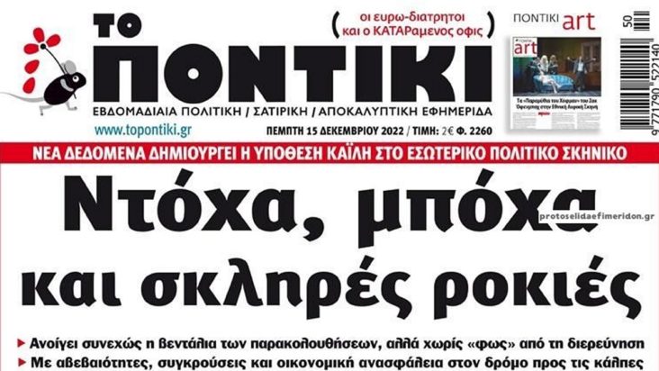 Το Ποντίκι σήμερα Πέμπτη 15/12/2022 3 έτη ago Media ΕΦΗΜΕΡΙΔΕΣ ΠΡΩΤΟΣΕΛΙΔΑ ΤΟ ΠΟΝΤΙΚΙ Διαβάστε το πρωτοσέλιδο της εφημερίδας «Το Ποντίκι» σήμερα 15/12/2022.