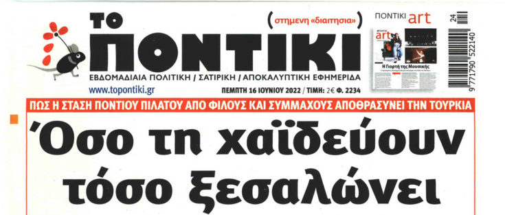 Το Ποντίκι σήμερα Πέμπτη 16/6/2022 4 έτη ago Media ΕΦΗΜΕΡΙΔΕΣ ΠΡΩΤΟΣΕΛΙΔΑ ΤΟ ΠΟΝΤΙΚΙ Διαβάστε το πρωτοσέλιδο της εφημερίδας “Το Ποντίκι” σήμερα 16/6/2022