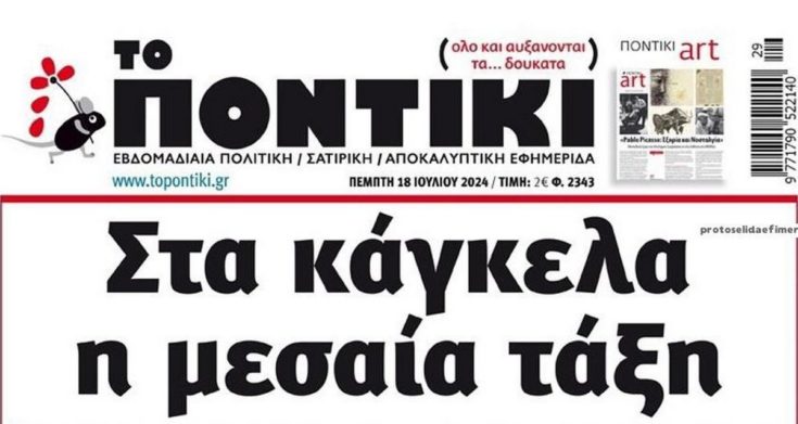 Το Ποντίκι σήμερα Πέμπτη 18/7/2024 1 έτος ago Media ΕΦΗΜΕΡΙΔΕΣ ΠΡΩΤΟΣΕΛΙΔΑ ΤΟ ΠΟΝΤΙΚΙ Διαβάστε το πρωτοσέλιδο της εφημερίδας «Το Ποντίκι» σήμερα 18/7/2024.