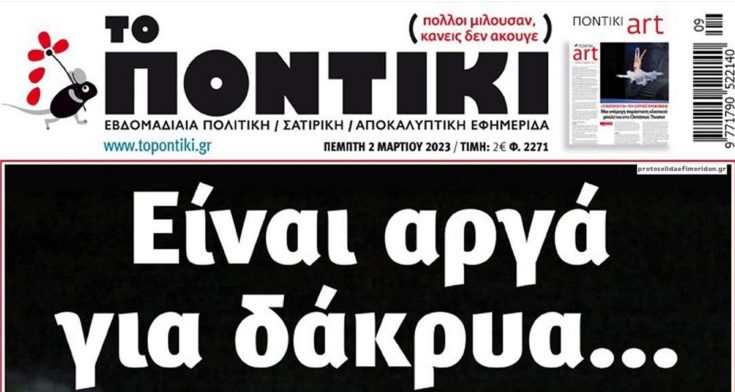 Το Ποντίκι σήμερα Πέμπτη 2/3/2023 3 έτη ago Media ΕΦΗΜΕΡΙΔΕΣ ΠΡΩΤΟΣΕΛΙΔΑ ΤΟ ΠΟΝΤΙΚΙ Διαβάστε το πρωτοσέλιδο της εφημερίδας «Το Ποντίκι» σήμερα 2/3/2023.
