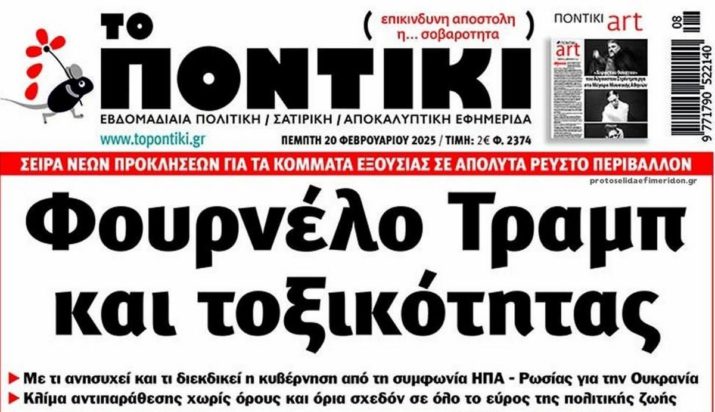 Το Ποντίκι σήμερα Πέμπτη 20/2/2025 10 μήνες ago Media ΕΦΗΜΕΡΙΔΕΣ ΠΡΩΤΟΣΕΛΙΔΑ ΤΟ ΠΟΝΤΙΚΙ Διαβάστε το πρωτοσέλιδο της εφημερίδας «Το Ποντίκι» σήμερα 20/2/2025.