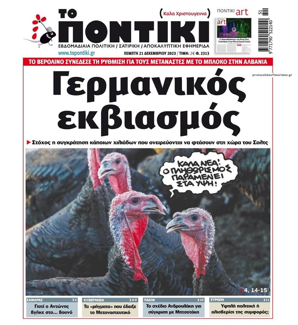 Διαβάστε το πρωτοσέλιδο της εφημερίδας «Το Ποντίκι» σήμερα 21/12/2023.