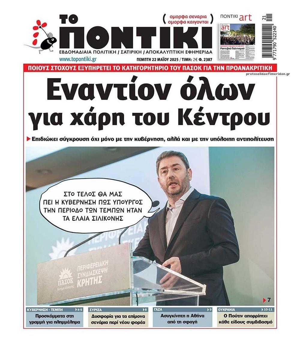 Διαβάστε το πρωτοσέλιδο της εφημερίδας «Το Ποντίκι» σήμερα 22/5/2025.