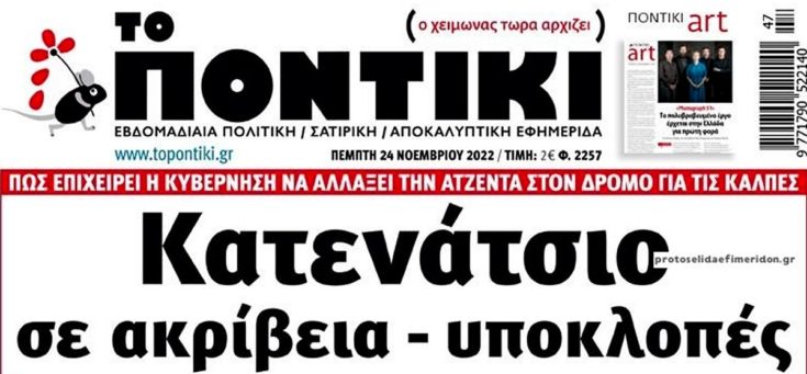Το Ποντίκι σήμερα Πέμπτη 24/11/2022 3 έτη ago Media ΕΦΗΜΕΡΙΔΕΣ ΠΡΩΤΟΣΕΛΙΔΑ ΤΟ ΠΟΝΤΙΚΙ Διαβάστε το πρωτοσέλιδο της εφημερίδας «Το Ποντίκι» σήμερα 24/11/2022.