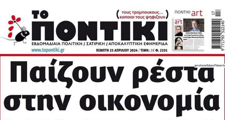 Το Ποντίκι σήμερα Πέμπτη 25/4/2024 2 έτη ago Media ΕΦΗΜΕΡΙΔΕΣ ΠΡΩΤΟΣΕΛΙΔΑ ΤΟ ΠΟΝΤΙΚΙ Διαβάστε το πρωτοσέλιδο της εφημερίδας «Το Ποντίκι» σήμερα 25/4/2024.