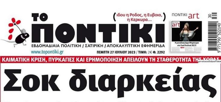 Το Ποντίκι σήμερα Πέμπτη 27/7/2023 2 έτη ago Media ΕΦΗΜΕΡΙΔΕΣ ΠΡΩΤΟΣΕΛΙΔΑ ΤΟ ΠΟΝΤΙΚΙ Διαβάστε το πρωτοσέλιδο της εφημερίδας «Το Ποντίκι» σήμερα 27/07/2023.
