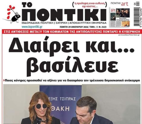 Το Ποντίκι σήμερα Πέμπτη 29/1/2026 6 ώρες ago Media ΕΦΗΜΕΡΙΔΕΣ ΠΡΩΤΟΣΕΛΙΔΑ ΤΟ ΠΟΝΤΙΚΙ Διαβάστε το πρωτοσέλιδο της εφημερίδας «Το Ποντίκι» σήμερα 29/01/2026.