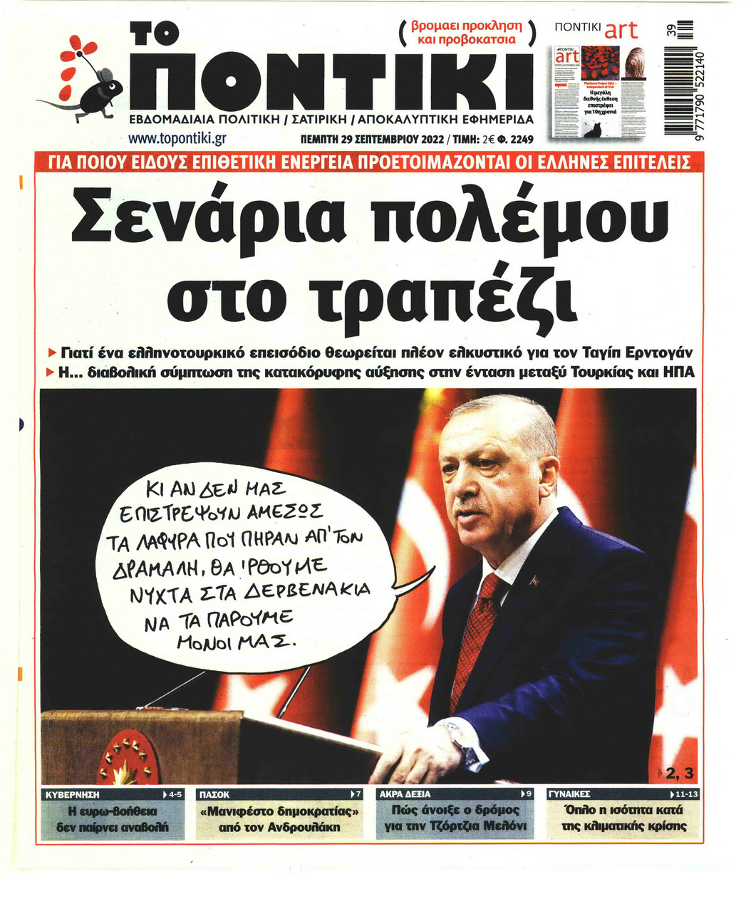 Διαβάστε το πρωτοσέλιδο της εφημερίδας «Το Ποντίκι» σήμερα 29/09/2022.