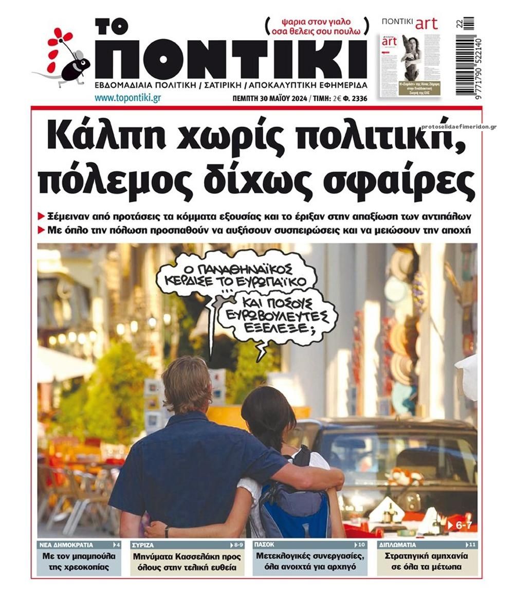 Διαβάστε το πρωτοσέλιδο της εφημερίδας «Το Ποντίκι» σήμερα 30/5/2024.
