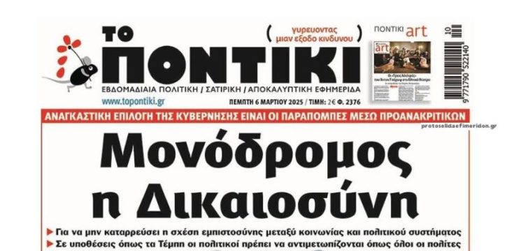 Το Ποντίκι σήμερα Πέμπτη 6/3/2025 10 μήνες ago Media ΕΦΗΜΕΡΙΔΑ ΤΟ ΠΟΝΤΙΚΙ ΠΡΩΤΟΣΕΛΙΔΟ ΤΟ ΠΟΝΤΙΚΙ ΤΟ ΠΟΝΤΙΚΙ Διαβάστε το πρωτοσέλιδο της εφημερίδας «Το Ποντίκι» σήμερα 6/3/2025.