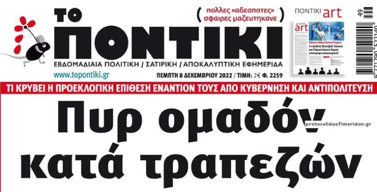 Το Ποντίκι σήμερα Πέμπτη 8/12/2022 3 έτη ago Media ΕΦΗΜΕΡΙΔΕΣ ΠΡΩΤΟΣΕΛΙΔΑ ΤΟ ΠΟΝΤΙΚΙ Διαβάστε το πρωτοσέλιδο της εφημερίδας «Το Ποντίκι» σήμερα 8/12/2022.