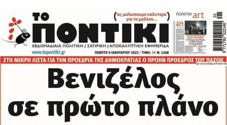 Το Ποντίκι σήμερα Πέμπτη 9/1/2025 11 μήνες ago Media ΕΦΗΜΕΡΙΔΕΣ ΠΡΩΤΟΣΕΛΙΔΑ ΤΟ ΠΟΝΤΙΚΙ Διαβάστε το πρωτοσέλιδο της εφημερίδας «Το Ποντίκι» σήμερα 9/1/2025.