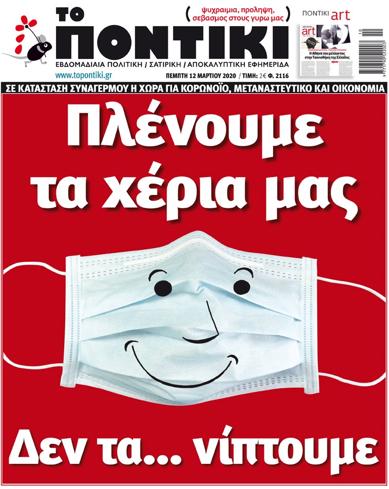 Το Ποντίκι σήμερα Πέμπτη 12/3/2020 Διονύσης Νίκκας 06:21, Πέμπτη 12 Μαρτίου 2020 Media Διαβάστε το πρωτοσέλιδο της εφημερίδας “Το Ποντίκι”… ΠΡΩΤΟΣΕΛΙΔΟ ΤΟ ΠΟΝΤΙΚΙ Μοιράσου το: σχολίασε κι εσύ (0 σχόλια) Ακολουθήστε το enikos.gr στο Google News και μάθετε πρώτοι όλες τις ειδήσεις Δείτε όλες τις τελευταίες ειδήσεις από την Ελλάδα και τον Κόσμο στο enikos.gr Ειδήσεις Ροή Ειδήσεων 9 λεπτά πριν Παράνομες επιδοτήσεις 1,7 εκατ. ευρώ στον ΟΠΕΚΕΠΕ: Πώς έστησε την κομπίνα η εγκληματική οργάνωση – Οι ρόλοι, οι βαριές κατηγορίες και οι… κουμπαριές 24 λεπτά πριν Αγρότες: Εν αναμονή της πανελλαδικής σύσκεψης στη Νίκαια το Σάββατο – Η διαμαρτυρία με σανό στη Λάρισα και η κινητοποίηση στο λιμάνι της Θεσσαλονίκης 19 λεπτά πριν Φοινικούντα: «Όταν τελειώσει αυτό, θα δεις τι έχεις να πάθεις» έλεγε ο ανιψιός στην ξαδέλφη του πριν συλληφθεί – Το τρίτο πρόσωπο με την πολυτελή ζωή και τα κότερα 4 ώρες πριν Πέθανε από καρκίνο ένα από τα παιδιά που γεννήθηκαν στην Ελλάδα από το σπέρμα του Δανού δότη – Νοσεί και το αδελφάκι του 41 λεπτά πριν Καλά νέα για τον βασιλιά Κάρολο – Αποκάλυψε ότι μειώνεται η θεραπεία του για τον καρκίνο και έκανε έκκληση για έγκαιρη διάγνωση 1 ώρα πριν Ύπνος: Πώς η σωστή διαρρύθμιση των επίπλων στο υπνοδωμάτιο μπορεί να σας βοηθήσει να κοιμάστε καλά 2 ώρες πριν Αριθμολογία: Ποιος είναι ο ιδανικός σύντροφος για εσάς, ανάλογα με την ημερομηνία γέννησής σας 3 ώρες πριν Σφουγγάρι πιάτων: Πόσο συχνά πρέπει να το απολυμαίνετε – Η πιο εύκολη και αποτελεσματική μέθοδος 4 ώρες πριν Οι 9 συμπεριφορές που αποκαλύπτουν ότι ένας άνδρας δεν είναι καλός άνθρωπος, όσο γοητευτικός κι αν φαίνεται 6 λεπτά πριν Πέτρινη σαρκοφάγος αναδύθηκε έπειτα από υποχώρηση υδάτων σε μεγάλο φράγμα – Η δύσκολη επιχείρηση μεταφοράς και η άγνωστη κληρονομιά 9 λεπτά πριν Παράνομες επιδοτήσεις 1,7 εκατ. ευρώ στον ΟΠΕΚΕΠΕ: Πώς έστησε την κομπίνα η εγκληματική οργάνωση – Οι ρόλοι, οι βαριές κατηγορίες και οι… κουμπαριές 15 λεπτά πριν Άγριος ξυλοδαρμός γιατρού στο νοσοκομείο Αιγίου από ασθενή – «Είναι άσχημα χτυπημένος» λέει ο Γιαννάκος 19 λεπτά πριν Φοινικούντα: «Όταν τελειώσει αυτό, θα δεις τι έχεις να πάθεις» έλεγε ο ανιψιός στην ξαδέλφη του πριν συλληφθεί – Το τρίτο πρόσωπο με την πολυτελή ζωή και τα κότερα 24 λεπτά πριν Αγρότες: Εν αναμονή της πανελλαδικής σύσκεψης στη Νίκαια το Σάββατο – Η διαμαρτυρία με σανό στη Λάρισα και η κινητοποίηση στο λιμάνι της Θεσσαλονίκης ENIKOS NETWORK 6 σοβαροί λόγοι που πρέπει να βάλετε παπλωματοθήκη απόψε πριν κοιμηθείτε ΣΦΕΕ: Ευρωπαϊκή φαρμακευτική μεταρρύθμιση- Σημαντικό βήμα αλλά όχι αρκετό για την ενίσχυση της καινοτομίας Ανοιχτή επιστολή παραγωγικών φορέων για τις αγροτικές κινητοποιήσεις – Τι ζητούν Χριστουγεννιάτικη φορολοταρία: 12 τυχεροί κερδίζουν από 100.000 ευρώ – Ποιοι εξαιρούνται από την κλήρωση Σύγχρονος Νοστράδαμος: Προειδοποιεί για «μεγάλο γεγονός» τους επόμενους μήνες που θα συγκλονίσει τη Βρετανία και τον κόσμο Τεστ παρατηρητικότητας: Μπορείτε να βρείτε τις 3 διαφορές στις εικόνες με έναν πιγκουίνο σε 14 δευτερόλεπτα περισσότερα 18:30 , Παρασκευή 12 Δεκεμβρίου 2025 «Τρομεροί γονείς»: Αυτό το Σάββατο 13/12 στις 20:00 με διπλό επεισόδιο Η Λουκία ετοιμάζεται να παντρευτεί τον Χάρη, ο Στέφανος έχει τις αντιρρήσεις του, η Ναταλία δε... 17:40 , Παρασκευή 12 Δεκεμβρίου 2025 GNTM: Η Δέσποινα Μοιραράκη είναι η καλεσμένη έκπληξη, απόψε στις 21:00 στο Star Στο προηγούμενο επεισόδιο (Τετάρτ