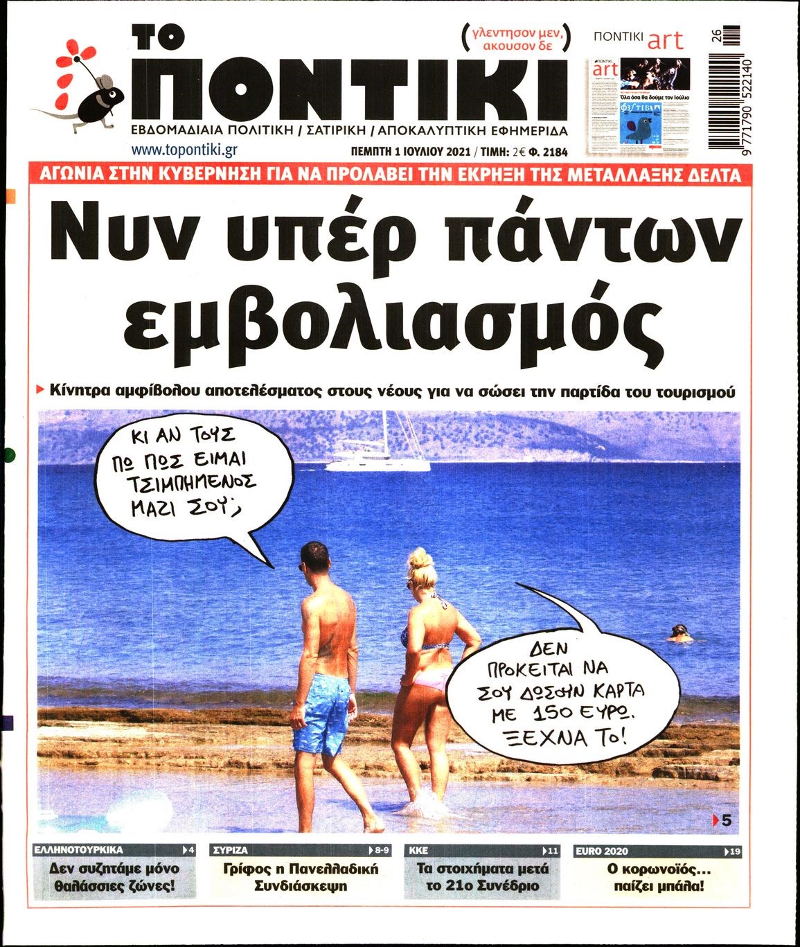 Το Ποντίκι σήμερα Πέμπτη 1/7/2021 Διονύσης Νίκκας 06:32, Πέμπτη 01 Ιουλίου 2021 Media Διαβάστε το πρωτοσέλιδο της εφημερίδας “Το Ποντίκι”… ΠΡΩΤΟΣΕΛΙΔΟ ΤΟ ΠΟΝΤΙΚΙ ΤΟ ΠΟΝΤΙΚΙ Μοιράσου το: σχολίασε κι εσύ (0 σχόλια) Ακολουθήστε το enikos.gr στο Google News και μάθετε πρώτοι όλες τις ειδήσεις Δείτε όλες τις τελευταίες ειδήσεις από την Ελλάδα και τον Κόσμο στο enikos.gr Ειδήσεις Ροή Ειδήσεων 1 ώρα πριν Ακίλα Σάλεχ: «Άκυρο» το τουρκολιβυκό μνημόνιο λέει ο πρόεδρος της λιβυκής Βουλής – Ανοίγει ο διάλογος με Ελλάδα, Αίγυπτο και Τουρκία 6 ώρες πριν Αγρότες: Την Τρίτη η απόφαση για διάλογο ή κλιμάκωση των κινητοποιήσεών τους – Πώς χαρακτηρίζουν τις ανακοινώσεις Τσιάρα και οι επόμενες κινήσεις 5 ώρες πριν Τραμπ για Ουκρανία: «Είμαστε πιο κοντά σε συμφωνία από ποτέ» – «Πολυεθνική δύναμη» προτείνουν οι Ευρωπαίοι 6 ώρες πριν Κυψέλη: Η 16χρονη που μαχαίρωσε την 14χρονη είχε συλληφθεί 3 φορές στο παρελθόν – Έβριζε καθηγητές, έβαζε φωτιές σε κάδους και εκβίαζε συμμαθητές της 5 ώρες πριν Τρομοκρατική επίθεση στο Σίδνεϊ: Θλίψη για τα 15 θύματα – Οργή στην εβραϊκή κοινότητα που προειδοποιούσε επί δύο χρόνια 6 ώρες πριν Ύπνος: Η αρχαία μορφή άσκησης που αποδεικνύεται αποτελεσματική στην αντιμετώπιση της αϋπνίας, σύμφωνα με μελέτη 7 ώρες πριν Αριθμολογία: Ο τυχερός σας αριθμός, ανάλογα με τον μήνα γέννησής σας 8 ώρες πριν Πώς να μην μαραίνονται γρήγορα τα κομμένα λουλούδια: Το λάθος στην τοποθέτηση του βάζου που πρέπει να αποφεύγετε 5 ώρες πριν Επιστήμονες ίσως έλυσαν το μυστήριο γύρω από τα Χόμπιτ – Νέα έρευνα αποκαλύπτει πώς εξαφανίστηκαν 3 λεπτά πριν Ντόναλντ Τραμπ: Κατέθεσε αγωγή 10 δισ. δολαρίων κατά του BBC, για συκοφαντική δυσφήμιση 13 λεπτά πριν ΗΠΑ: «Όπλο μαζικής καταστροφής» xαρακτήρισε ο Ντόναλντ Τραμπ τη φαιντανύλη 28 λεπτά πριν Στέλλα Κονιτοπούλου: «Η κόρη μου με έστειλε για ψυχοθεραπεία για να μπορέσω να το διαχειριστώ» 37 λεπτά πριν Δώδεκα μετανάστες εντοπίστηκαν νεκροί στα σύνορα Μαρόκου-Αλγερίας 46 λεπτά πριν Ράλι ανατιμήσεων σε βασικά είδη διατροφής: Οι αυξήσεις αγγίζουν το 50% μέσα σε έναν χρόνο ENIKOS NETWORK Πότε το χρόνιο ροχαλητό να αποτελέσει ένδειξη κινδύνου για την καρδιά; Τι λένε οι ειδικοί Μάριος Θεμιστοκλέους: Το ΕΣΥ ενισχύεται, εκσυγχρονίζεται, αλλάζει ΕΒΕΠ για αγροτικές κινητοποιήσεις: Κάθε επιπλέον εβδομάδα προσθέτει περίπου 200 εκατ. ευρώ ζημιά Τι προβλέπει το νομοσχέδιο του υπουργείου Εθνικής Άμυνας – Oι αλλαγές στους μισθούς Σύγχρονος Νοστράδαμος: Προειδοποιεί για «μεγάλο γεγονός» τους επόμενους μήνες που θα συγκλονίσει τη Βρετανία και τον κόσμο Τεστ παρατηρητικότητας: Μπορείτε να βρείτε τις 3 διαφορές στις εικόνες με έναν πιγκουίνο σε 14 δευτερόλεπτα περισσότερα 21:35 , Δευτέρα 15 Δεκεμβρίου 2025 Το Σπίτι Δίπλα Στο Ποτάμι: Η Ιουλία και ο Φωκάς μετακομίζουν στη Ρόδο – Δύο νέοι χαρακτήρες μπαίνουν στη σειρά Δύο νέοι, κομβικοί χαρακτήρες κάνουν την εμφάνισή τους αυτή την εβδομάδα στην αγαπημένη σειρά ... 19:46 , Δευτέρα 15 Δεκεμβρίου 2025 Άγιος έρωτας: Η Χριστίνα λέει την αλήθεια στον Αντρέα Ο Βασίλης δέχεται επίθεση από τους συμμαθητές του, η Αναστασία είναι συντετριμμένη με την απώλ... 18:45 , Δευτέρα 15 Δεκεμβρίου 2025 Συνέδριο «Ελληνικός Τουρισμός 2025, Μια εθνική υπόθεση!» – «Ο Θαλάσσιος Πυλώνας ως Ενιαία Στρατηγική: Συνέργειες σε Λιμάνια, Μαρίνες, Ακτοπλοΐα, Κρουαζιέρα και Yachting» Στο πλαίσιο της τέταρτης και τελευταίας ενότητας του 7ου συνεδρίου «Ελληνικός Τουρισμός 2025, ... 18:13