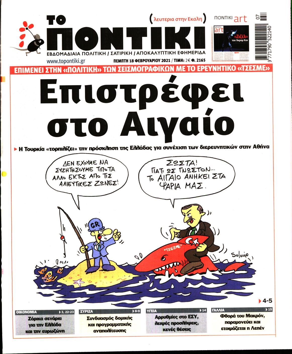 Το Ποντίκι σήμερα Πέμπτη 18/2/2021 Διονύσης Νίκκας 06:21, Πέμπτη 18 Φεβρουαρίου 2021 Media Διαβάστε το πρωτοσέλιδο της εφημερίδας “Το Ποντίκι”… ΠΡΩΤΟΣΕΛΙΔΟ ΤΟ ΠΟΝΤΙΚΙ ΤΟ ΠΟΝΤΙΚΙ Μοιράσου το: σχολίασε κι εσύ (0 σχόλια) Ακολουθήστε το enikos.gr στο Google News και μάθετε πρώτοι όλες τις ειδήσεις Δείτε όλες τις τελευταίες ειδήσεις από την Ελλάδα και τον Κόσμο στο enikos.gr Ειδήσεις Ροή Ειδήσεων 1 ώρα πριν Πούτιν: «Ανοησίες» και «υστερίες» οι ισχυρισμοί της Ευρώπης για πιθανή σύγκρουση με τη Ρωσία – «Κάνουν πλύση εγκεφάλου» 6 ώρες πριν Έρευνα MRB: Η πρόθεση ψήφου και τα σημαντικότερα προβλήματα – Οι «λέξεις» που εκφράζουν τους πολίτες 2 ώρες πριν Αμοργός: «Θα προσπαθήσω να το κάνω κάθε μέρα» – Ποιος είναι ο αγρότης που έστησε μόνος του το πρώτο μπλόκο στο νησί 30 λεπτά πριν Τραγωδία στην Αλεξανδρούπολη: Παιδάκι 3 ετών μεταφέρθηκε νεκρό από τη μητέρα του στο νοσοκομείο 1 ώρα πριν Συνάντηση Μητσοτάκη με την Κ.Ο. της ΝΔ: Οι αφίξεις των βουλευτών, τα γλυκά και τα «πηγαδάκια» 5 ώρες πριν Τα 4 ζώδια που ξαναβρίσκουν τον εαυτό τους – «Μπαίνετε επιτέλους στην ουσία των πραγμάτων» 6 ώρες πριν 20 χρόνια τα Χριστούγεννα ξεκινούν στα Public με μεγάλη ποικιλία σε δώρα! 5 ώρες πριν «Δεν είχα κλάψει από τότε που διαγνώστηκα με καρκίνο, ώσπου ένα τηλεφώνημα με έκανε να λυγίσω» – Η συγκλονιστική εξομολόγηση ενός άνδρα 4 ώρες πριν Τα 7 σπάνια χαρακτηριστικά που κάνουν κάποιους ανθρώπους ακαταμάχητους 8 λεπτά πριν Το Λαϊκό Λαχείο στον ρυθμό των Χριστουγέννων: Μοιράζει μέχρι και 1.000.000 ευρώ στην ειδική κλήρωση της Παρασκευής 19 Δεκεμβρίου 13 λεπτά πριν Πετράλωνα: Εξαφανίστηκε 13χρονος από χώρο φιλοξενίας ασυνόδευτων ανηλίκων 18 λεπτά πριν Παραμένουν στα μπλόκα οι αγρότες της Μεσσηνίας – Κλειστή η εθνική οδός Καλαμάτας- Αθήνας 24 λεπτά πριν Φον ντερ Λάιεν: Επιστολή για το μεταναστευτικό ενόψει της Συνόδου Κορυφής – «Υπήρξε πρόοδος, αλλά έχουμε σημαντική δουλειά μπροστά μας» 29 λεπτά πριν Χριστουγεννιάτικη γιορτή με τον Σάκη Ρούβα στον ξενώνα «Μαριάννα Β. Βαρδινογιάννη-ΕΛΠΙΔΑ» ENIKOS NETWORK 5 πράγματα που αποφεύγει γαστρεντερολόγος για να μειώσει τον κίνδυνο καρκίνου του εντέρου Ανησυχητική αύξηση της υπέρτασης στα παιδιά – Πώς θα τα προστατέψουμε; ΕΛΕΤΑΕΝ: Πόσα χρήματα θα δοθούν σε δήμους και νοικοκυριά από τις ΑΠΕ «IRIS Παντού»: Στην κορυφή της Ευρώπης η Ελλάδα με 120 εκατ. ευρώ συναλλαγές το 2025 – Η σύγκριση με τις άλλες χώρες της Ευ... Σύγχρονος Νοστράδαμος: Προειδοποιεί για «μεγάλο γεγονός» τους επόμενους μήνες που θα συγκλονίσει τη Βρετανία και τον κόσμο Τεστ παρατηρητικότητας: Μπορείτε να βρείτε τις 3 διαφορές στις εικόνες με έναν πιγκουίνο σε 14 δευτερόλεπτα περισσότερα 12:35 , Τετάρτη 17 Δεκεμβρίου 2025 Μίρκα Παπακωνσταντίνου: «Δεν ήμουν αισιόδοξη για τα νούμερα – Είμαι ρεαλίστρια» Στα γυρίσματα του εορταστικού επεισοδίου της αγαπημένης σειράς “Το Σόι Σου”, βρέθηκε η κάμερα ... 12:12 , Τετάρτη 17 Δεκεμβρίου 2025 Ακούστε την εκπομπή του Νίκου Χατζηνικολάου 17/12/2025 Ακούστε την εκπομπή του Νίκου Χατζηνικολάου στον ραδιοφωνικό σταθμό RealFm 97,8, την Τετάρτη 1... 11:35 , Τετάρτη 17 Δεκεμβρίου 2025 Home Alone: Το σπίτι της ταινίας θα ανακαινιστεί – Επιστροφή στην αισθητική της δεκαετίας του ’90 Οι νέοι ιδιοκτήτες του πραγματικού σπιτιού που παρουσιάζεται στην κλασική ταινία του 1990 «Hom... 11:25 , Τετάρτη 17 Δεκεμβρίου 2025 Grand Hotel: Απόψε το τελευταίο επεισόδιο της χρονιάς – Όλα τα μυστικά μένουν εδώ Το τελευταίο επεισόδιο της χρονιάς της σ