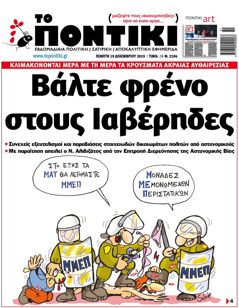 Το Ποντίκι σήμερα Πέμπτη 19/12/19 Διονύσης Νίκκας 06:40, Πέμπτη 19 Δεκεμβρίου 2019 Media Διαβάστε το πρωτοσέλιδο της εφημερίδας “Το Ποντίκι…” ΠΟΝΤΙΚΙ ΠΡΩΤΟΣΕΛΙΔΟ Μοιράσου το: σχολίασε κι εσύ (0 σχόλια) Ακολουθήστε το enikos.gr στο Google News και μάθετε πρώτοι όλες τις ειδήσεις Δείτε όλες τις τελευταίες ειδήσεις από την Ελλάδα και τον Κόσμο στο enikos.gr Ειδήσεις Ροή Ειδήσεων 1 ώρα πριν Αυστραλία: Σχέσεις με το ISIS εκτιμάται πως είχαν οι δράστες της τρομοκρατικής επίθεσης στο Σίδνεϊ 2 ώρες πριν Αγρότες: Αμετακίνητοι από τα μπλόκα σε τελωνεία και εθνικές οδούς – Ο χάρτης των κινητοποιήσεων και τα αιτήματά τους 2 ώρες πριν Σοκ στο Χόλιγουντ: Νεκροί από μαχαιριές ο σκηνοθέτης Ρομπ Ράινερ και η σύζυγός του – Αναφορές ότι τους σκότωσε ο γιος τους 2 ώρες πριν Δολοφονία στη Φοινικούντα: Απολογούνται σήμερα οι δύο συλληφθέντες – Στο «κάδρο» και δύο γυναίκες 1 ώρα πριν Τρόμος στην Κηφισιά: Ανήλικος ληστής έκανε κεφαλοκλείδωμα σε γυναίκα υπάλληλο φούρνου και άρπαξε χρήματα – ΒΙΝΤΕΟ 50 λεπτά πριν Κληρονόμησε 2,8 εκατ. ευρώ και φοβάται ότι οι άνδρες θα την πλησιάζουν για τα λεφτά – «Μήπως καλύτερα να το κρατήσω μυστικό;» 2 ώρες πριν Κάτω από παλάτι κρυβόταν ένα άλλο μνημειώδες ανάκτορο: Οι ανασκαφές σε αρχαία πόλη αποκάλυψαν τα ερείπια και τα μυστικά του 4 ώρες πριν Τα ζώδια σήμερα, Δευτέρα 15 Δεκεμβρίου: Ιχθύες, ξεκινήστε από εκεί που η παρουσία σας έχει σημασία 4 ώρες πριν Διατροφή: Γιατρός προειδοποιεί για 2 απλά λάθη που αυξάνουν τον κίνδυνο χρόνιων παθήσεων 5 λεπτά πριν Λίλα Μπακλέση – Νατάσα Εξηνταβελώνη: «Όταν πας μια Πατρινιά και μια Περιστεριώτισσα σε εστιατόριο με Michelin – Βίντεο από την έξοδό τους 10 λεπτά πριν Τσιάρας για αγροτικές κινητοποιήσεις: Μονόδρομος ο διάλογος – Διαφάνεια με τη μεταφορά του ΟΠΕΚΕΠΕ στην ΑΑΔΕ 14 λεπτά πριν Χάρης Δούκας: «Χρειάζονται υπερβάσεις τώρα για την ανατροπή» 20 λεπτά πριν Θεσσαλονίκη: Πατέρας έσπασε πόρτα παιδικού σταθμού και άρπαξε τα παιδιά του – Είναι σε διάσταση με τη σύζυγό του 28 λεπτά πριν Ο «καθαριστής» της Greek Mafia ENIKOS NETWORK Έχετε καλή φυσική κατάσταση; Δείτε αν μπορείτε να κάνετε αυτές τις 5 κινήσεις 21χρονη που έγινε αγνώριστη χάνοντας 45 κιλά αποκαλύπτει το πρωινό που καίει λίπος Δάνεια σε ελβετικό φράγκο: Ανακοινώνεται η ρύθμιση- Ποιοι και πόσο θα έχουν όφελος – Όλες οι λεπτομέρειες Τέλος οι διώξεις για χρέη σε Εφορία και ΕΦΚΑ – Τι προβλέπει νέα διάταξη μετά την πτώχευση Σύγχρονος Νοστράδαμος: Προειδοποιεί για «μεγάλο γεγονός» τους επόμενους μήνες που θα συγκλονίσει τη Βρετανία και τον κόσμο Τεστ παρατηρητικότητας: Μπορείτε να βρείτε τις 3 διαφορές στις εικόνες με έναν πιγκουίνο σε 14 δευτερόλεπτα περισσότερα 09:15 , Δευτέρα 15 Δεκεμβρίου 2025 Την Κυριακή με τη Realnews: Ό,τι και αν αγοράσεις, σκανάρεις και κερδίζεις! Την Κυριακή με τη Realnews: Ό,τι και αν αγοράσεις, σκανάρεις και κερδίζεις! Με το PADU app, το... 07:42 , Δευτέρα 15 Δεκεμβρίου 2025 Την Κυριακή με τη Realnews: Δωροεπιταγή10€ Δωροεπιταγή αξίας 10€ για αγορές άνω των 60€ από τα πολυκαταστήματα FactoryOutlet H προσφορά ι... 07:17 , Δευτέρα 15 Δεκεμβρίου 2025 Αυτή την Κυριακή με τη Realnews: Instyle, μαζί Drive και Realnews Geopolitics Αυτή την Κυριακή με τη Realnews: Instyle, μαζί Drive και Realnews Geopolitics Instyle Η Άννα Ρ... 05:49 , Δευτέρα 15 Δεκεμβρίου 2025 Οι οικονομικές εφημερίδες 15/12/2025 Διαβάστε τα πρωτοσέλιδα από τις οικονομικές εφημερίδες, σήμερα 15/12/2025. ΤΕΛΕΥΤΑΙΕΣ ΕΙΔΗΣΕΙΣ 10 λεπτά πριν Τσιάρας για αγροτικές κινητοποιήσεις: Μονόδρομος ο... 14 λεπτά πριν Χ