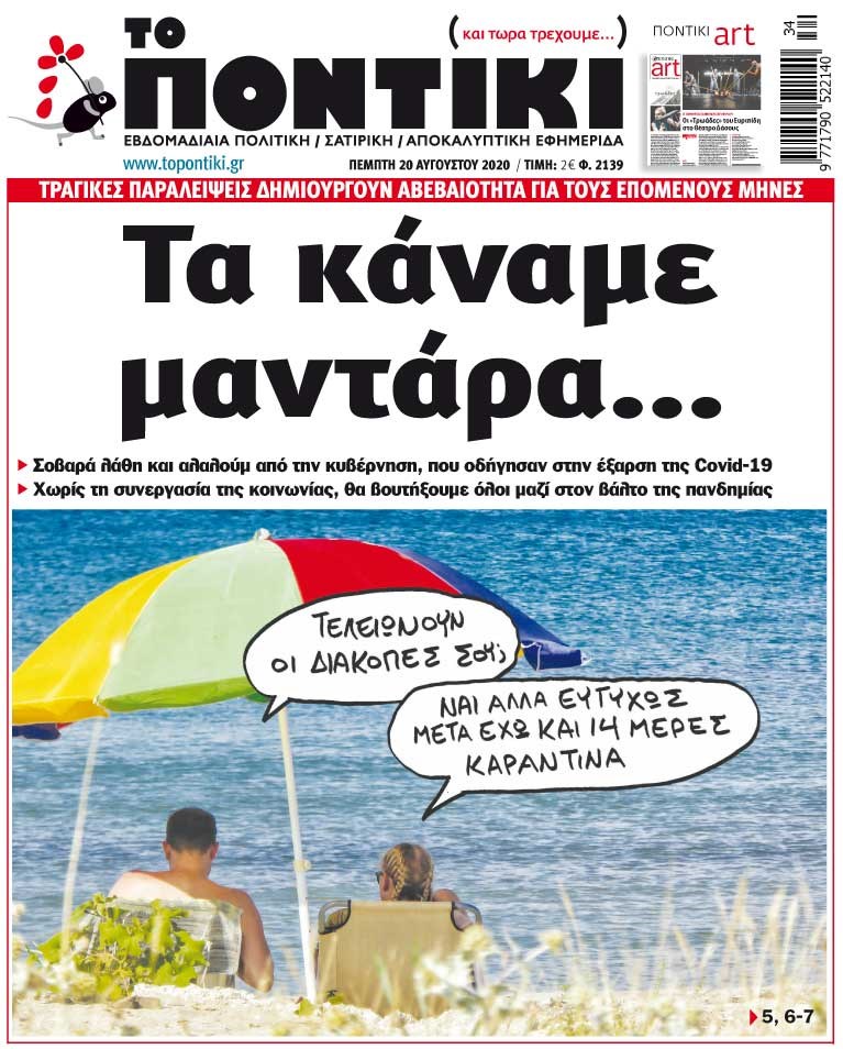 Το Ποντίκι σήμερα Πέμπτη 20/8/2020 Διονύσης Νίκκας 06:27, Πέμπτη 20 Αυγούστου 2020 Media Διαβάστε το πρωτοσέλιδο της εφημερίδας “Το Ποντίκι”… ΠΡΩΤΟΣΕΛΙΔΟ ΤΟ ΠΟΝΤΙΚΙ ΤΟ ΠΟΝΤΙΚΙ Μοιράσου το: σχολίασε κι εσύ (0 σχόλια) Ακολουθήστε το enikos.gr στο Google News και μάθετε πρώτοι όλες τις ειδήσεις Δείτε όλες τις τελευταίες ειδήσεις από την Ελλάδα και τον Κόσμο στο enikos.gr Ειδήσεις Ροή Ειδήσεων 49 λεπτά πριν Πούτιν: «Ανοησίες» και «υστερίες» οι ισχυρισμοί της Ευρώπης για πιθανή σύγκρουση με τη Ρωσία – «Κάνουν πλύση εγκεφάλου» 5 ώρες πριν Έρευνα MRB: Η πρόθεση ψήφου και τα σημαντικότερα προβλήματα – Οι «λέξεις» που εκφράζουν τους πολίτες 2 ώρες πριν Αμοργός: «Θα προσπαθήσω να το κάνω κάθε μέρα» – Ποιος είναι ο αγρότης που έστησε μόνος του το πρώτο μπλόκο στο νησί 1 ώρα πριν Κυψέλη: Στον ανακριτή η 16χρονη που μαχαίρωσε την 14χρονη – «Είχα το μαχαίρι για προστασία – Έχω θέμα με τα νεύρα μου» 39 λεπτά πριν Συνάντηση Μητσοτάκη με την Κ.Ο. της ΝΔ: Οι αφίξεις των βουλευτών, τα γλυκά και τα «πηγαδάκια» 5 ώρες πριν Τα 4 ζώδια που ξαναβρίσκουν τον εαυτό τους – «Μπαίνετε επιτέλους στην ουσία των πραγμάτων» 6 ώρες πριν 20 χρόνια τα Χριστούγεννα ξεκινούν στα Public με μεγάλη ποικιλία σε δώρα! 4 ώρες πριν «Δεν είχα κλάψει από τότε που διαγνώστηκα με καρκίνο, ώσπου ένα τηλεφώνημα με έκανε να λυγίσω» – Η συγκλονιστική εξομολόγηση ενός άνδρα 3 ώρες πριν Τα 7 σπάνια χαρακτηριστικά που κάνουν κάποιους ανθρώπους ακαταμάχητους 4 λεπτά πριν Ο σπάνιος σεισμός που έλυσε τα χέρια των επιστημόνων – Αποκάλυψε ακριβώς όσα αναζητούσαν 8 λεπτά πριν Τζιτζικώστας από το Στρασβούργο: «Σανίδα σωτηρίας για την ευρωπαϊκή αυτοκινητοβιομηχανία η νέα δέσμη μέτρων που υιοθετήσαμε – Κινητήρες εσωτερικής καύσης και υβριδικά οχήματα και μετά το 2035» 11 λεπτά πριν Τροχαίο στην Αττική Οδό: Κλειστή η δεξιά λωρίδα μετά την έξοδο Μαραθώνος στο ρεύμα προς Αεροδρόμιο 13 λεπτά πριν Βόλος: Καθηγητής κλείδωσε μαθητές στην τάξη για να κάνει μάθημα – Οι καταγγελίες 18 λεπτά πριν Debate Καιρίδη – Γιαννούλη στον Realfm 97,8 για τη συζήτηση στη Βουλή, την ακρίβεια και τον πρωτογενή τομέα ENIKOS NETWORK 5 πράγματα που αποφεύγει γαστρεντερολόγος για να μειώσει τον κίνδυνο καρκίνου του εντέρου Ανησυχητική αύξηση της υπέρτασης στα παιδιά – Πώς θα τα προστατέψουμε; «IRIS Παντού»: Στην κορυφή της Ευρώπης η Ελλάδα με 120 εκατ. ευρώ συναλλαγές το 2025 – Η σύγκριση με τις άλλες χώρες της Ευ... Αδειοδωρόσημο Χριστουγέννων 2025: Πότε γίνεται η καταβολή του και σε ποιους Σύγχρονος Νοστράδαμος: Προειδοποιεί για «μεγάλο γεγονός» τους επόμενους μήνες που θα συγκλονίσει τη Βρετανία και τον κόσμο Τεστ παρατηρητικότητας: Μπορείτε να βρείτε τις 3 διαφορές στις εικόνες με έναν πιγκουίνο σε 14 δευτερόλεπτα περισσότερα 12:35 , Τετάρτη 17 Δεκεμβρίου 2025 Μίρκα Παπακωνσταντίνου: «Δεν ήμουν αισιόδοξη για τα νούμερα – Είμαι ρεαλίστρια» Στα γυρίσματα του εορταστικού επεισοδίου της αγαπημένης σειράς “Το Σόι Σου”, βρέθηκε η κάμερα ... 12:12 , Τετάρτη 17 Δεκεμβρίου 2025 Ακούστε την εκπομπή του Νίκου Χατζηνικολάου 17/12/2025 Ακούστε την εκπομπή του Νίκου Χατζηνικολάου στον ραδιοφωνικό σταθμό RealFm 97,8, την Τετάρτη 1... 11:35 , Τετάρτη 17 Δεκεμβρίου 2025 Home Alone: Το σπίτι της ταινίας θα ανακαινιστεί – Επιστροφή στην αισθητική της δεκαετίας του ’90 Οι νέοι ιδιοκτήτες του πραγματικού σπιτιού που παρουσιάζεται στην κλασική ταινία του 1990 «Hom... 11:25 , Τετάρτη 17 Δεκεμβρίου 2025 Grand Hotel: Απόψε το τελευταίο επεισόδιο της χρο