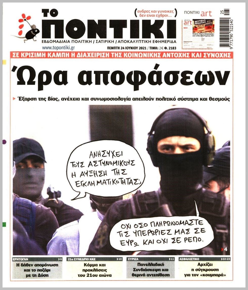 Το Ποντίκι σήμερα Πέμπτη 24/6/2021 Διονύσης Νίκκας 06:14, Πέμπτη 24 Ιουνίου 2021 Media Διαβάστε το πρωτοσέλιδο της εφημερίδας “Το Ποντίκι”… ΠΡΩΤΟΣΕΛΙΔΟ ΤΟ ΠΟΝΤΙΚΙ ΤΟ ΠΟΝΤΙΚΙ Μοιράσου το: σχολίασε κι εσύ (0 σχόλια) Ακολουθήστε το enikos.gr στο Google News και μάθετε πρώτοι όλες τις ειδήσεις Δείτε όλες τις τελευταίες ειδήσεις από την Ελλάδα και τον Κόσμο στο enikos.gr Ειδήσεις Ροή Ειδήσεων 6 ώρες πριν Μητσοτάκης: Αναγκαία η μεταρρύθμιση του πρωτογενούς τομέα – Τα 6 νέα μέτρα για το στεγαστικό και οι αναφορές σε «Ιθάκη» και «πολιτικούς του καναπέ» 5 ώρες πριν Δάνεια σε ελβετικό φράγκο: Τα βασικά σημεία της ρύθμισης – ανάσας για 40.000 δανειολήπτες – Αναλυτικός οδηγός με ερωτήσεις και απαντήσεις 5 ώρες πριν Κυψέλη: Εξιτήριο πήρε η 14χρονη μαθήτρια που μαχαιρώθηκε από την 16χρονη σε σχολείο – «Θέλω να βοηθήσω το παιδί, έχει μπλέξει με κακές παρέες» 4 ώρες πριν Τραμπ: Γιατί κατέθεσε τώρα την αγωγή κατά του BBC – Πώς η κίνησή του εξυπηρετεί το νέο δόγμα του για «αντίσταση» στην Ευρώπη, υπέρ των συντηρητικών 5 ώρες πριν ΟΠΕΚΕΠΕ – Παράνομες επιδοτήσεις: Ελεύθεροι με περιοριστικούς όρους και οι 7 κατηγορούμενοι που απολογήθηκαν σήμερα 4 ώρες πριν Ανακαλύφθηκε βυθισμένη πέτρινη κατασκευή ανοιχτά της Κριμαίας – Αποτελεί μέρος αρχαίας ελληνικής αποικίας 5 ώρες πριν Ύπνος: Αυτό μπορεί να είναι το χειρότερο λάθος για το βιολογικό ρολόι σας, σύμφωνα με ειδικό 6 ώρες πριν Αριθμολογία: Οι άνθρωποι που έχουν γεννηθεί αυτές τις 3 ημερομηνίες, προσελκύουν μεγάλη τύχη πριν από το τέλος του 2025 8 ώρες πριν Οι 7 συμπεριφορές που μαρτυρούν ότι ένας άνδρας επενδύει μακροπρόθεσμα σε μια σχέση 15 λεπτά πριν Παναθηναϊκός: Η έντονη επιθυμία του Ματίας Λεσόρ να επιστρέψει στα γήπεδα – «Μου λείπει πολύ το γ@@@@». 30 λεπτά πριν Νίκος Πλακιάς: Η Μαρία Καρυστιανού πλέον θα κρίνεται ως πολιτικός και όχι ως συγγενής 46 λεπτά πριν Ντόναλντ Τραμπ: Κάλυψε απόλυτα την προσωπάρχη του Λευκού Οίκου: «Ναι, έχω προσωπικότητα αλκοολικού» 1 ώρα πριν ΗΠΑ: Στην αγορά δύο Boeing 747-8 προχωρά η Πολεμική Αεροπορία για την υποστήριξη του προεδρικού στόλου 1 ώρα πριν Ιταλία: Λεωφορείο έπεσε πάνω σε βιτρίνα καταστήματος στο Τορίνο – Τρεις τραυματίες ENIKOS NETWORK Αίτημα ΙΣΑ για την εξαίρεση των προσωπικών γιατρών από τις κατ’ οίκον επισκέψεις Η σκανδιναβική μέθοδος στον ύπνο που μπορεί να σώσει έναν γάμο Πιερρακάκης: Ο προϋπολογισμός συμβάλλει ουσιαστικά στην ενίσχυση της αγοραστικής δύναμης της πλειονότητας των εργαζομένων e-ΕΦΚΑ: Παρατείνεται η προθεσμία για την υποβολή ΑΠΔ – Ποιους αφορά Σύγχρονος Νοστράδαμος: Προειδοποιεί για «μεγάλο γεγονός» τους επόμενους μήνες που θα συγκλονίσει τη Βρετανία και τον κόσμο Τεστ παρατηρητικότητας: Μπορείτε να βρείτε τις 3 διαφορές στις εικόνες με έναν πιγκουίνο σε 14 δευτερόλεπτα περισσότερα 20:06 , Τρίτη 16 Δεκεμβρίου 2025 Ο ΣΚΑΙ καταγγέλλει τον ΕΚΚΟΜΕΔ Επιστολή με την οποία καταγράφει την έντονη διαμαρτυρία του προς τον διευθύνοντα σύμβουλο του... 17:40 , Τρίτη 16 Δεκεμβρίου 2025 Eurovision: Στις 4 Ιανουαρίου αποκαλύπτονται τα 28 τραγούδια του ελληνικού τελικού Η αγωνία τελειώνει, η γιορτή της Eurovision αρχίζει στην ΕΡΤ από τις πρώτες ημέρες της νέας χρ... 17:09 , Τρίτη 16 Δεκεμβρίου 2025 Alter Ego Media: Βαθύτατη θλίψη και ειλικρινή συλλυπητήρια για την απώλεια της Ειρήνης Μαρινάκη Τη βαθύτατη θλίψη και τα ειλικρινή συλλυπητήριά της εκφράζει η Alter Ego Media για τον θάνατο ... 13:00 , Τρίτη 16 Δεκεμβρίου 2025 «Στο Παρά Πέντε – 20 Χρόνια Μετά
