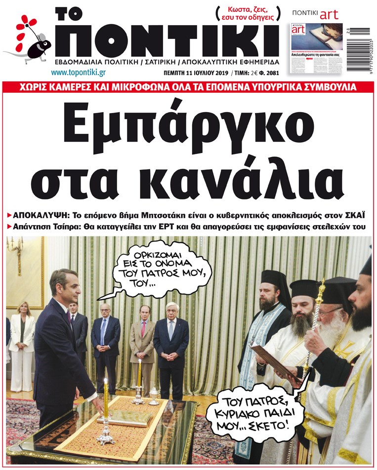 Το Ποντίκι σήμερα Πέμπτη Διονύσης Νίκκας 06:24, Πέμπτη 11 Ιουλίου 2019 Media Διαβάστε τα πρωτοσέλιδο του Ποντικιού της Πέμπτης… ΠΟΝΤΙΚΙ ΠΡΩΤΟΣΕΛΙΔΟ Μοιράσου το: σχολίασε κι εσύ (0 σχόλια) Ακολουθήστε το enikos.gr στο Google News και μάθετε πρώτοι όλες τις ειδήσεις Δείτε όλες τις τελευταίες ειδήσεις από την Ελλάδα και τον Κόσμο στο enikos.gr Ειδήσεις Ροή Ειδήσεων 8 ώρες πριν Μακελειό στο Σίδνεϊ: Πατέρας και γιος οι δράστες της τρομοκρατικής επίθεσης – Γιατί η Αυστραλία βάζει στο στόχαστρο το Ιράν 8 ώρες πριν Μακελειό στην Αυστραλία: «Πέρασαν οι σφαίρες πάνω από το αυτοκίνητο» – Συγκλονίζει η μαρτυρία Έλληνα που ζει στο Σίδνεϊ 6 ώρες πριν Τρομοκρατική επίθεση στο Σίδνεϊ: «Το αναπόφευκτο συνέβη πλέον» – Πώς οι δράστες είχαν χάσει τον ανθρωπισμό τους πριν πατήσουν την σκανδάλη 7 ώρες πριν Όλα τα αιτήματα αγροτών, κτηνοτρόφων και μελισσοκόμων προς την κυβέρνηση – Παραμένουν στα μπλόκα και προαναγγέλλουν κλιμάκωση 10 ώρες πριν Λακωνία: Βίντεο ντοκουμέντο από την επιχείρηση διάσωσης της 13χρονης που έπεσε σε πηγάδι – Ποια ήταν τα πρώτα λόγια της 15 λεπτά πριν Οπτική ψευδαίσθηση: Μόνο το 1% των ανθρώπων θα βρει το ψάρι σε 12 δευτερόλεπτα 30 λεπτά πριν Διατροφή: Γιατρός προειδοποιεί για 2 απλά λάθη που αυξάνουν τον κίνδυνο χρόνιων παθήσεων 60 λεπτά πριν Τα ζώδια σήμερα, Δευτέρα 15 Δεκεμβρίου: Ιχθύες, ξεκινήστε από εκεί που η παρουσία σας έχει σημασία 9 ώρες πριν Ύπνος: 5 λόγοι για τους οποίους ξυπνάτε κουρασμένοι το πρωί κατά τη διάρκεια του χειμώνα 7 λεπτά πριν Τραγωδία στην Κολομβία: Δεκαεπτά νεκροί, ανάμεσά τους 16 μαθητές λυκείου, από πτώση λεωφορείου σε χαράδρα 15 λεπτά πριν Οπτική ψευδαίσθηση: Μόνο το 1% των ανθρώπων θα βρει το ψάρι σε 12 δευτερόλεπτα 22 λεπτά πριν Δώρο Χριστουγέννων 2025: Πότε ξεκινά η πληρωμή του και πως να το υπολογίσετε – Ποιοι θα πάρουν περισσότερα φέτος 30 λεπτά πριν Διατροφή: Γιατρός προειδοποιεί για 2 απλά λάθη που αυξάνουν τον κίνδυνο χρόνιων παθήσεων 34 λεπτά πριν Άντονι Αλμπανέζε: Η Αυστραλία θα εξετάσει αυστηρότερους νόμους για την οπλοκατοχή μετά τη μαζική επίθεση στο Σίδνεϊ ENIKOS NETWORK 8 κορυφαίες συμβουλές για άνδρες που θέλουν φλογερή σεξουαλική ζωή, σύμφωνα με ειδικό Baby botox: Ποια τα οφέλη και οι κίνδυνοι του να ξεκινήσει κάποιος τις ενέσεις πριν εμφανιστούν ρυτίδες Τέλος οι διώξεις για χρέη σε Εφορία και ΕΦΚΑ – Τι προβλέπει νέα διάταξη μετά την πτώχευση Υπουργείο Αγροτικής Ανάπτυξης: Ενισχύσεις de minimis ύψους 2,1 εκατ. ευρώ – Οι δικαιούχοι Σύγχρονος Νοστράδαμος: Προειδοποιεί για «μεγάλο γεγονός» τους επόμενους μήνες που θα συγκλονίσει τη Βρετανία και τον κόσμο Τεστ παρατηρητικότητας: Μπορείτε να βρείτε τις 3 διαφορές στις εικόνες με έναν πιγκουίνο σε 14 δευτερόλεπτα περισσότερα 05:49 , Δευτέρα 15 Δεκεμβρίου 2025 Οι οικονομικές εφημερίδες 15/12/2025 Διαβάστε τα πρωτοσέλιδα από τις οικονομικές εφημερίδες, σήμερα 15/12/2025. 05:43 , Δευτέρα 15 Δεκεμβρίου 2025 Οι αθλητικές εφημερίδες 15/12/2025 Διαβάστε τα πρωτοσέλιδα από τις αθλητικές εφημερίδες, σήμερα 15/12/2025. 05:38 , Δευτέρα 15 Δεκεμβρίου 2025 Οι πολιτικές εφημερίδες 15/12/2025 Διαβάστε τα πρωτοσέλιδα από τις πολιτικές εφημερίδες, σήμερα 15/12/2025. 21:34 , Κυριακή 14 Δεκεμβρίου 2025 Ο Δικαστής: Η Λέττα είναι αποφασισμένη να αποκαλύψει την αλήθεια για το τροχαίο, απόψε στις 21:45 στον ΑΝΤ1 Ραγδαίες οι εξελίξεις στο νέο επεισόδιο της σειράς “Ο Δικαστής” απόψε στις 21:45 σ... ΤΕΛΕΥΤΑΙΕΣ ΕΙΔΗΣΕΙΣ 7 λεπτά πριν Τραγωδία στην Κολομβία: Δεκαεπτά νεκροί, ανά