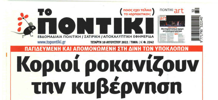 Το Ποντίκι σήμερα Τετάρτη 10/8/2022 3 έτη ago Media ΕΦΗΜΕΡΙΔΕΣ ΠΡΩΤΟΣΕΛΙΔΑ ΤΟ ΠΟΝΤΙΚΙ Διαβάστε το πρωτοσέλιδο της εφημερίδας “Το Ποντίκι” σήμερα 10/8/2022