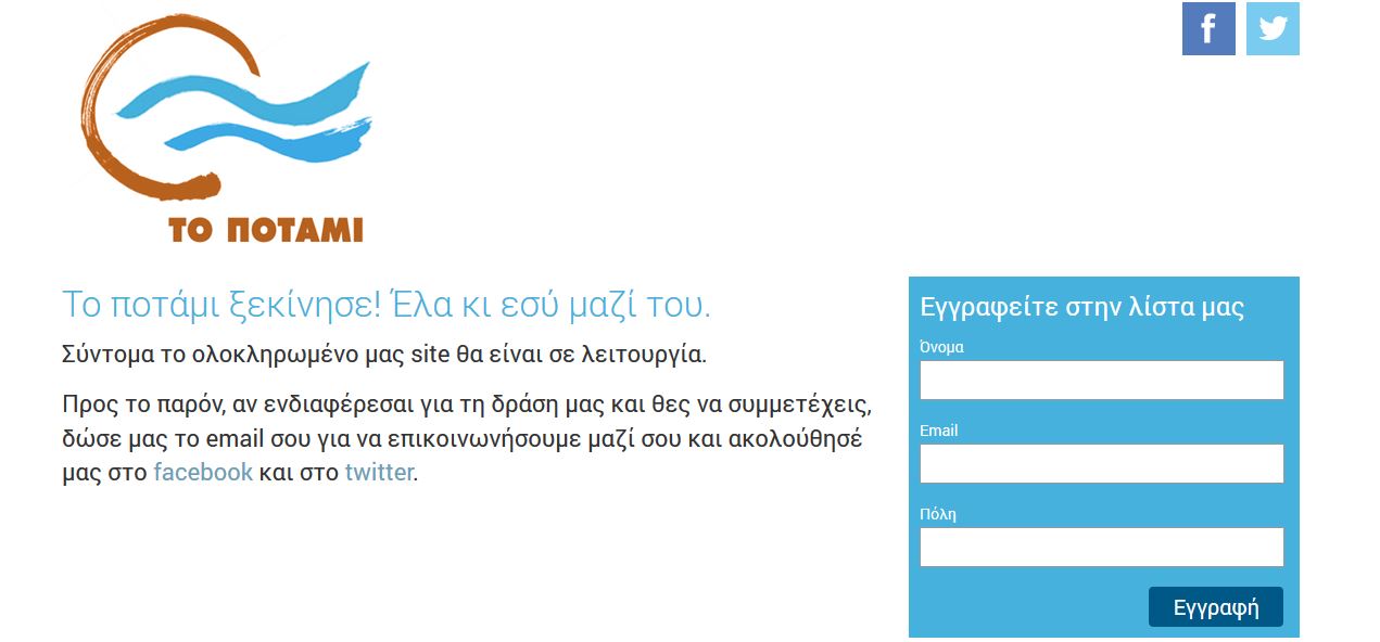 Γι’ αυτό λοιπόν αποφασίσαμε να κάνουμε «ΤΟ ΠΟΤΑΜΙ». Ποιοι το αποφασίσαμε; Άνθρωποι με τα ίδια ερωτήματα. Επαγγελματίες της ζωής – νέοι στην πολιτική. Κανείς από εμάς δεν έχει υπηρετήσει σε υπουργεία, υφυπουργεία ή γραφεία αρχηγών. Φοιτητές, διανοούμενοι, οικονομολόγοι, εργάτες, καλλιτέχνες, άνεργοι, έμποροι, γιατροί, αρχιτέκτονες. Μια ομάδα που έχει μυαλό και δύναμη – τη δύναμη της λογικής και του δίκιου. Τις επόμενες ώρες θα βγάλετε και εσείς μόνοι σας τα συμπεράσματά σας.