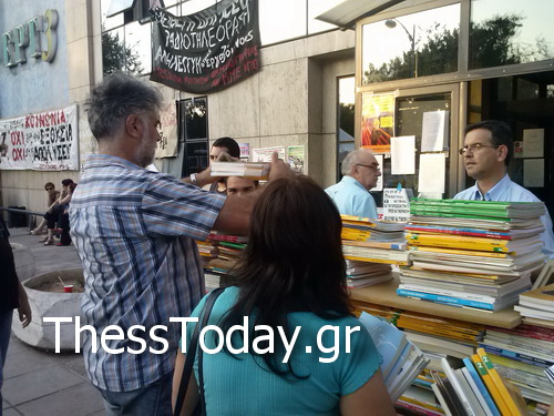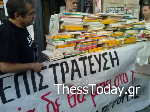 Υπό τους ήχους του αριστουργήματος των Pink Floyd “The Wall”, εκπαιδευτικοί, μέλη των ΕΛΜΕ Θεσσαλονίκης αλλά και απλοί πολίτες “χτίζουν”, με βιβλία, ένα… τείχος γνώσης και πολιτισμού στην είσοδο του κτιρίου της ΕΤ3 στη Λεωφόρο Στρατού.