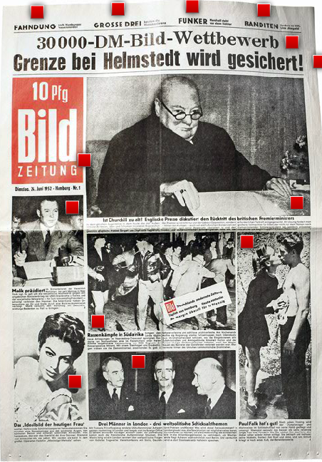Στο πλαίσιο του εορτασμού των γενεθλίων της, η “Bild” σήμερα, διανεμήθηκε δωρεάν στα 41 εκατομμύρια νοικοκυριά της χώρας, με εξαίρεση τις διευθύνσεις 200.000 πολιτών οι οποίοι είχαν ζητήσει να μη λάβουν το σημερινό φύλλο. Το πρώτο φύλλο της “Bild”, έτσι όπως κυκλοφόρησε πριν από 60 χρόνια: