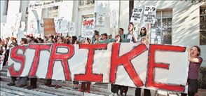 Απεργία»! Αυτό έγραφε φαρδιά- πλατιά το πανό που κρατούσαν οι φοιτητές του Πανεπιστημίου «Μπέρκλεϊ» στην Καλιφόρνια. Ήταν το 2010 όταν οι φοιτητές διαμαρτύρονταν μαζικά για τις αυξήσεις στα δίδακτρα και οι αντιδράσεις τους είχαν πάρει παναμερικανικό χαρακτήρα με διαδηλώσεις και καταλήψεις σχολών σε όλα σχεδόν τα αμερικανικά πανεπιστήμια