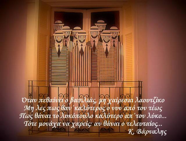 Όταν πέθανε ο Παλαμάς, ο Σικελιανός μίλησε για το φέρετρο που πάνω του ακούμπησε όλη η Ελλάδα. Από αυτή τη στόφα ήταν φτιαγμένος και ο Βάρναλης. Από τη στόφα των ποιητών που πάνω τους μπορεί να ακουμπήσει ο λαός στα δύσκολα. Ο Βάρναλης, που υπήρξε ένα με το λαό χωρίς ποτέ να θωπεύσει και να καλοπιάσει το λαό, που αρνήθηκε να γίνει «δημοπίθηκος» που με κολακείες εξαπατά το λαό, έγινε η «φωνή του λαού».