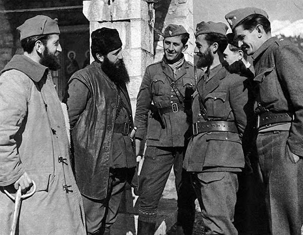 – Έχει μακριά γένεια κι ένα αληθινό άστρο στο μαύρο σκούφο του. Κι άμα μιλάει -κι ας χιονίζει ακόμα- γίνεται μονομιάς πολλή ζέστα. Κι όταν ακούνε το όνομά του οι Γερμανοί κρύβουνται σα λαγοί μέσα στα δάσα.