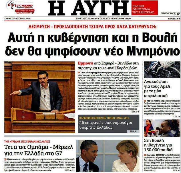 Στις 6/6/2015 η εφημερίδα «Αυγή» έλεγε – για λογαριασμό της κυβέρνησης – αυτά: