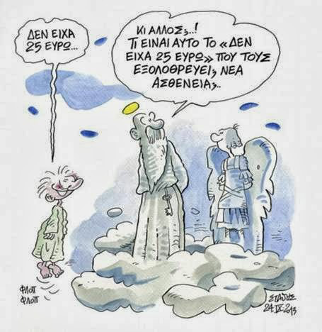Διαθέτει, όμως, ευφυέστατους πολιτικούς «σωτήρες». Προικισμένους στους ευφημισμούς και την παρλαπιπολογία. Που βάζουν τον έναν φόρο μετά τον άλλον και ακολούθως βαφτίζουν το κρέας – ψάρι. Βαφτίζουν το χαράτσι – δικαιοσύνη. Βαφτίζουν το 25ευρω – σουλφαμιδόσκονη υπέρ φτωχών και αδυνάμων!