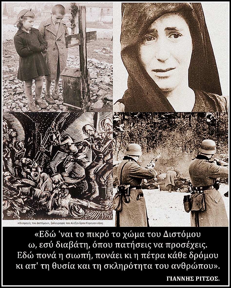 Υστερόγραφο:  Σε τέτοιο βαθμό έχει ναρκοθετηθεί αυτή η υπόθεση που η Χάγη αντί να δικαιώσει τους Διστομίτες, τελικά… ικανοποίησε τις θέσεις της Γερμανίας. Για να αποδειχτούν, και με αυτόν τον τρόπο, δυο πράγματα: Πρώτον, ότι το περίφημο «διεθνές δίκαιο» δεν είναι (ούτε αυτό) «τυφλό». Δεύτερον, ότι το ζήτημα των γερμανικών αποζημιώσεων δεν θα λυθεί με νομικούς, αλλά με πολιτικούς όρους. Ότι, δηλαδή, πέραν της νομικής του διάστασης, συνιστά ένα κατ’ εξοχήν πολιτικό ζήτημα. Και ως τέτοιο, ως πολιτική διεκδίκηση, θα βρει την λύση του. Η πολιτική διεκδίκηση των γερμανικών επανορθώσεων είναι μονόδρομος για τον ελληνικό λαό. Όχι μόνο απέναντι στη Γερμανία. Αλλά – δυστυχώς – απέναντι και στις κυβερνήσεις τις… ελληνικές. Που επειδή ακριβώς είναι ελληνικές, όσοι τις συγκρότησαν και τις συγκροτούν, δεν νοείται ιστορικά να αφεθούν να ξεμπερδέψουν με καμία υποκριτική «συγγνώμη» (που, άλλωστε, ούτε κι αυτή δεν έχουν πει)…