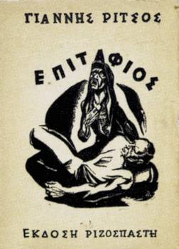Στη μέση της πλατείας κάποιος μιλούσε/ δεν ξέρω ποιος, μα ξέρω ότι η λαλιά του/ την ίδια την καρδιά μου αντιλαλούσε:/ “Μας κλέβουν τον ιδρώ μας, το ψωμί,/ για να φτιάξουνε σύνεργα θανάτου,/ και βόλια μας πετούν για πλερωμή”./
