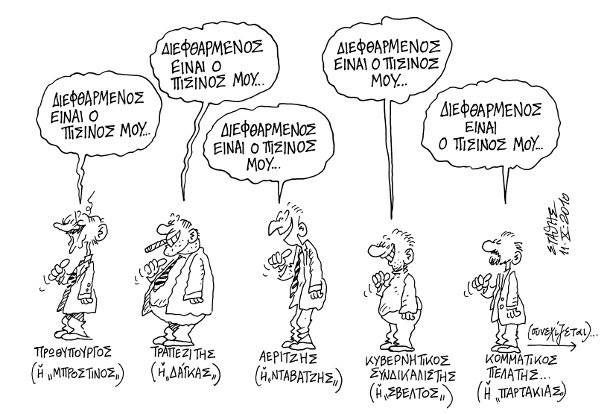 Ένα απίστευτο φαγοπότι. Σε ένα διαρκές «έκανε ένα δωράκι στον εαυτό του». Που εξελίσσεται πάνω στην πλάτη του ελληνικού λαού. Κι όμως κάθε φορά που η μπόχα ξεχειλίζει δεν χάνουν ευκαιρία να δώσουν το “παρών” κι εκείνοι οι πρόθυμοι κλόουν, οι έτοιμοι να υποδυθούν ότι… «πέφτουν από τα σύννεφα».