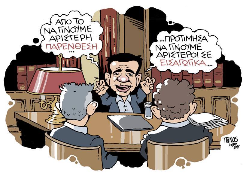 Αυτοί που θα άλλαζαν την Ελλάδα και την Ευρώπη (!), ήρθαν να φέρουν σε πέρας την πιο βρώμικη δουλειά που οι προκάτοχοί τους θα ήταν αδύνατον να ολοκληρώσουν, δίνοντας «αριστερό» περιτύλιγμα στην ραγιάδικη θεωρία πως «δεν υπάρχει εναλλακτική» και διακηρύσσοντας – αυτοί οι πρώην «αντιμνημονιακοί» και «αντιμερκελιστές» – ότι όποιος δεν είναι με το «αριστερό» τους Μνημόνιο είναι με τον Σόιμπλε!