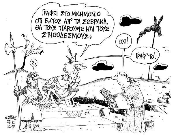 Μέχρι τώρα μας είχαν επιφυλάξει ρόλο «Ιφιγένειας». Η Ελλάδα κατακρεουργείται, ο λαός εξανδραποδίζεται στο βωμό των θυσιών που του επέβαλαν οι υπαίτιοι της κρίσης. Ο λαός θυσιάζεται για να διασωθούν από την κρίση – και για να κερδοσκοπήσουν μέσα στην κρίση – αυτοί που προκάλεσαν την κρίση! Τώρα, όμως, δεν τους φτάνει ο εξαναγκασμός μας σε αφανισμό. Τώρα θέλουν ακόμα και να ασελγήσουν πάνω στο κουφάρι της «Ιφιγένειας»!