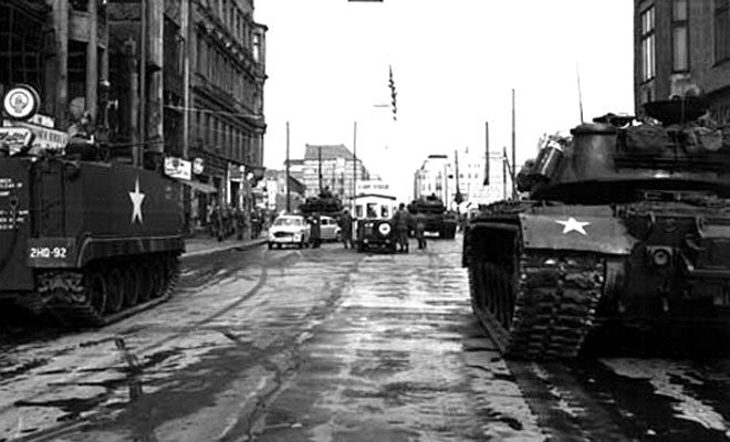 γ) Στις αρχές Αυγούστου 1961 οι δυνάμεις του NATO στην Κεντρική Ευρώπη τέθηκαν σε κατάσταση συναγερμού, τα αμερικανικά τανκς έκαναν την εμφάνισή τους στο έδαφος της ΓΛΔ, διέσχισαν την Πύλη του Βραδεμβούργου, εισέβαλαν στο έδαφος της Ανατολικής Γερμανίας και αποκρούστηκαν από τους φρουρούς της πρωτεύουσας της Ανατολικής Γερμανίας.