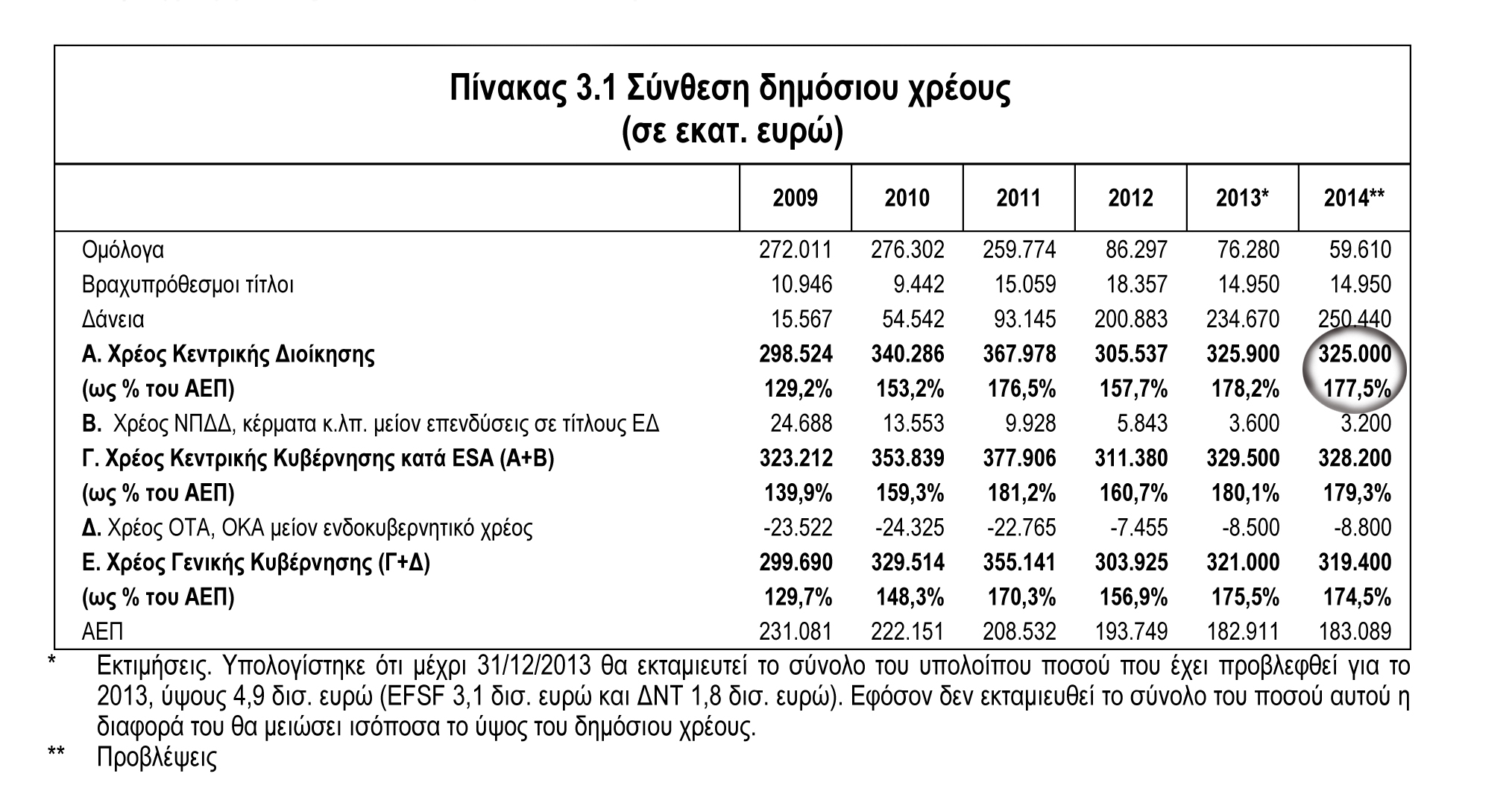 Μετά από 4 χρόνια μνημονίων το χρέος το 2014 θα βρίσκεται στο 177,5% του ΑΕΠ (προσχέδιο προϋπολογισμού για το 2014)