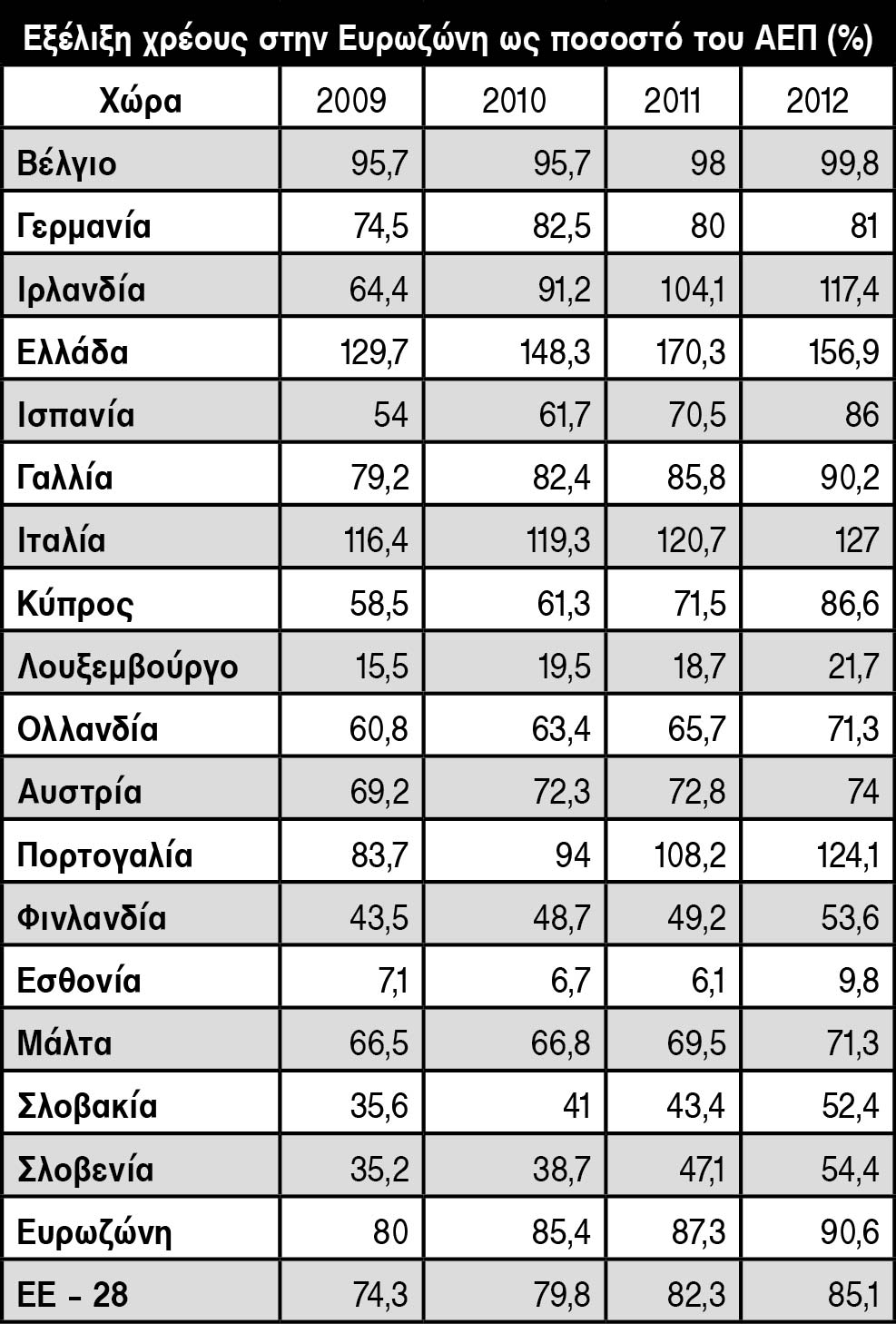 Όπως προκύπτει από την προχτεσινή έκθεση της Eurostat, η πολιτική της «μείωσης των χρέους» έχει οδηγήσει σε αύξηση του χρέους σε όλα (ανεξαιρέτως!) τα κράτη – μέλη της Ευρωζώνης